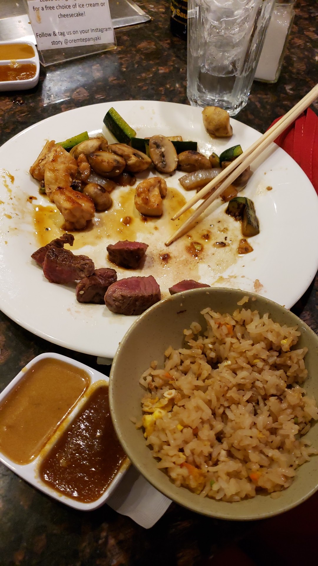 POSITIVES: The decor is absolutely beautiful. From the moment I walked in, I was amazed with the cleanliness, the art pieces, and the general vibe of the restaurant. The hosts, servers, and cook are extremely friendly and were willing to accommodate us in our small requests. For example, my mother loves to order extra egg for the fried rice. We also requested a side cup of the salad dressing to dip our food in. Trust me when I say you need to try this.... THIS. TASTES. AMAZING. The steak was definitely the best choice, but you cannot go wrong with chicken, shrimp, or a combination.