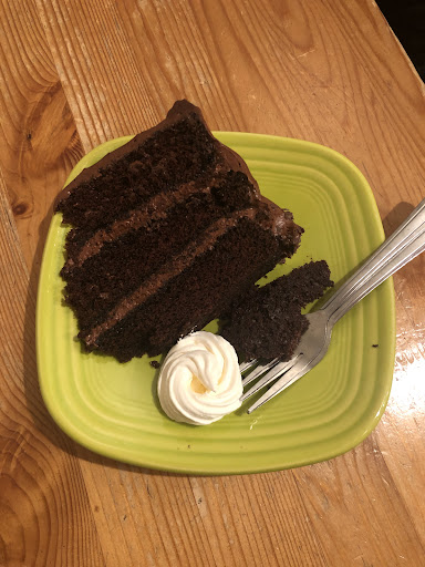 Chocolate cake with milk chocolate frosting. This is probably the Chocolate's best cake. It's moist, light, and the chocolate frosting is delicious. Same goes for this cake as the yellow cake - make sure you've bought a slice a few hours in advance so you can make sure it comes to room temperature before you eat it. It makes a world of difference.