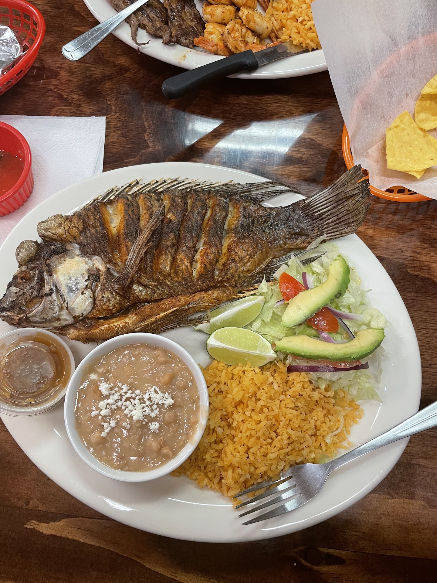 Literally just finished my meal and I had to hop on here and tell you guys about it. I had mojarra…I’m sorry I don’t remember the name. I had an amazing grilled tilapia with an amazing red sauce. I even got to try a little of my mom’s napalis. When I took a bite of my fish my eyes literally swelled with tears. And every bite was like that. Every. Single. Bite. I’m not kidding I think I need to buy them all Christmas gifts this year. The fish tasted fresh and not even slightly muddy. It was crisp on the outside and bursting with juicy buttery flesh in the inside. I didn’t eat most of my beans and rice (which were also AMAZING) because I wanted to eat alllllll of my fish. I wish I had asked for a little bit of the sauce to go because it’s the perfect amount of spicy and refreshing. Everyone who works there is very kind and the owner went table to table to talk to everyone. The inside of the restaurant was nice and warm and the music was relaxing but still gave me a little bit of a sway. The paintings on the wall all were so gorgeous and it just added to the joyful experience. I’ve literally never had better Mexican food in my life and I’m from California! (Which as it turns out was far from authentic.)