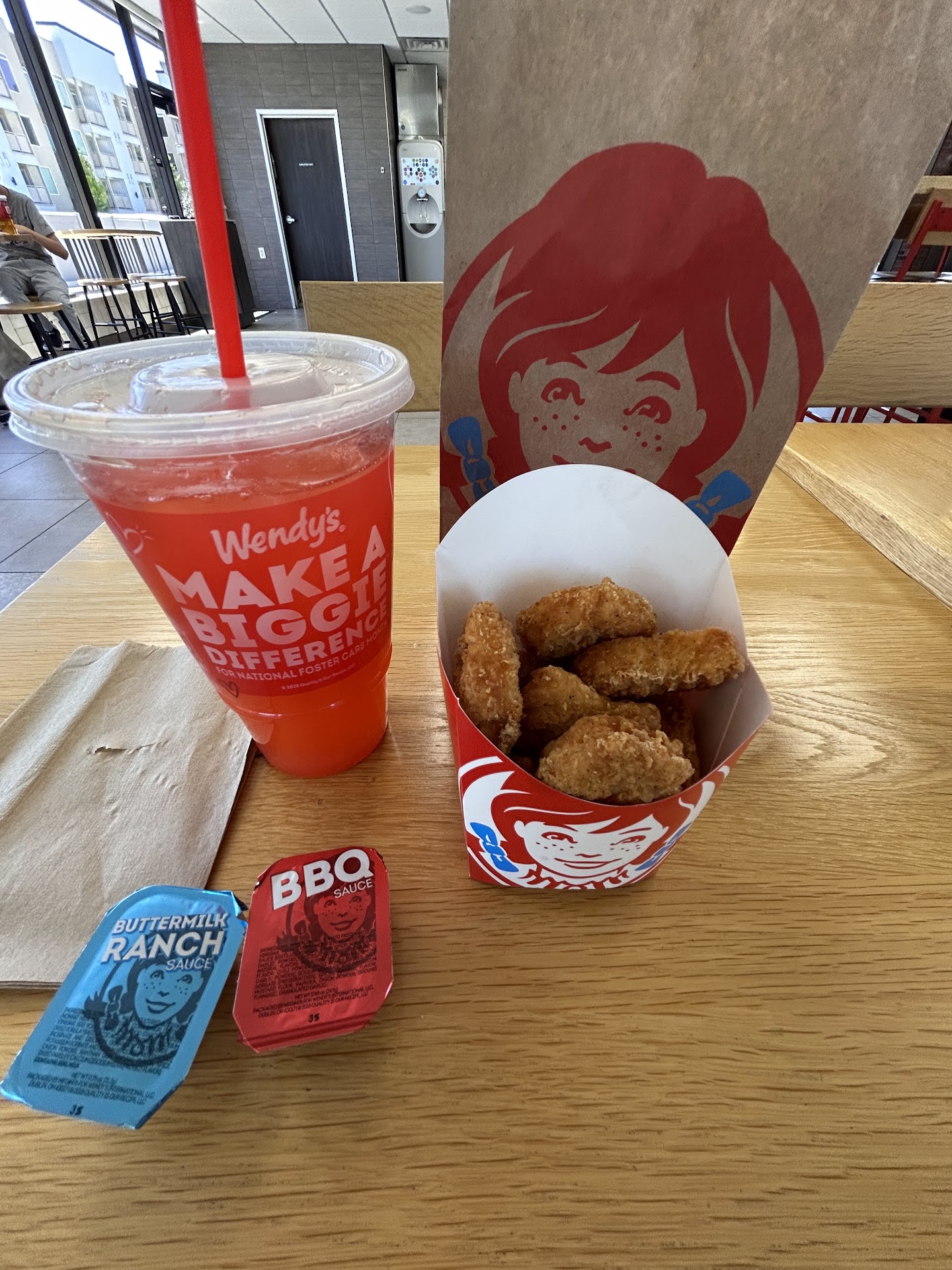 It should be noted that I have been through the drive-up window since this place first open and all of the staff have been so nice to me that I wonder, "Does corporate even know how nice the employees are to me?" Does corporate even know that this usually happens to me at other Wendy's locations, the nice treatment?