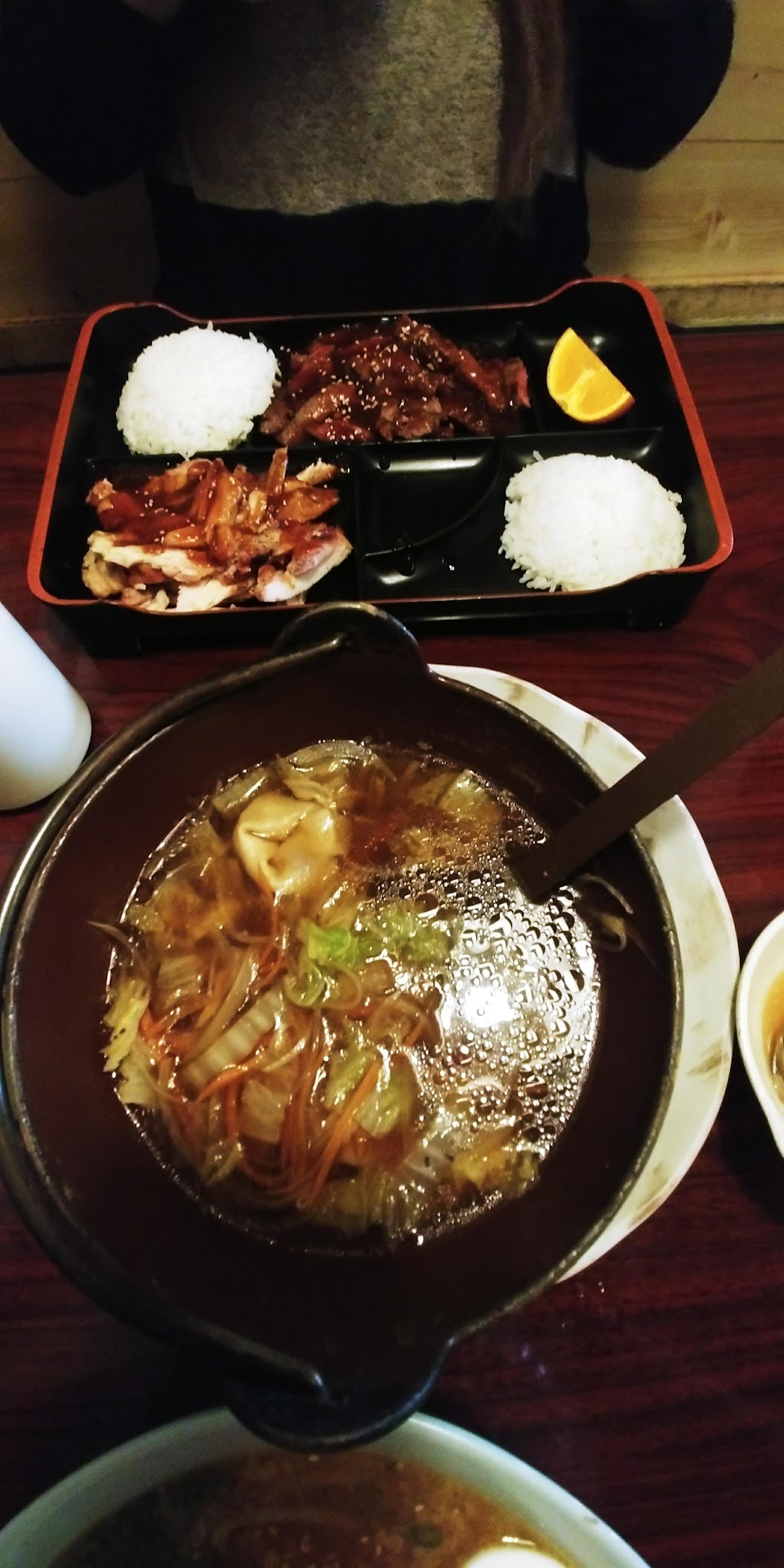 I ordered the sushi and gyoza combo, it was a great price (13.49$) for that as well as a small salad, miso soup, and a bowl of rice as well included. My family ordered the beef bulgogi and two yakisoba dishes (not pictured). Portions were really good for the price. The yakisoba flavors could have been more prominent in the yakisoba.