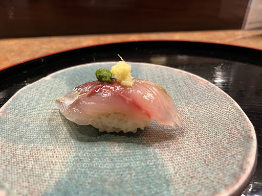 My favorite pieces at Hanazen, now that I've been 3 times are: Smoked salmon with yuzu gelee: The acidity of the yuzu keeps it light but accentuates the savoriness and umami of the smoked salmon. Baby sea bream: I've had sea bream but not baby sea bream. And the slight char over the skin side really brings out the surprisingly rich flavor of this white fish. Mackerel (saba) with marinated kelp: Usually saba is served with a vinegar brine. But the marinated kelp has a slight sweetness to it, in addition to the rice vinegar. It's a different play to an otherwise typical piece. Albacore tuna with garlic and red chili pepper: I don't particularly like albacore tuna typically, but this piece was amazing, because of the toppings. I'm not joking, but it tasted like Korean barbecue! Anago with sansho pepper: I love anago. But this is a twist on an already delicious fish. The sauce is made from the anago bones after it has been chargrilled and made into the sauce, which is lighter than the typical sweet sauce you get. Additionally, the sansho was a bomb of a topping - it's not spicy so much as numbing. Really jolts you when you eat it.