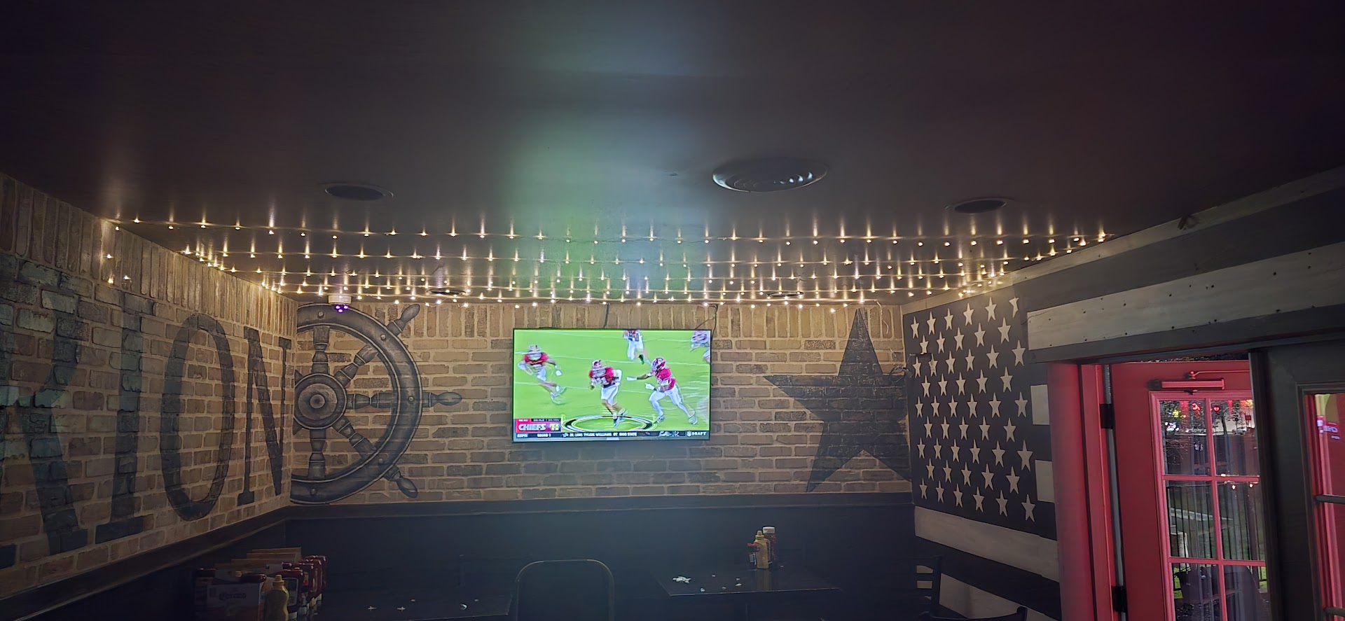 Read moreTypical "sports" bar. Plenty of TV's showing several sports channels. Nice interior seating area, and a good sized patio for outdoor dining as well. Adequate beer and liquor selection, but a limited wine offering. Typical menu offerings that you would expect at a "sports" bar. That's about the only good things I have to say about our experience here... We were seated quickly, and our drink orders taken, and then the waiting started... It took 15 minutes to be served a soft drink and a domestic beer. This is while we can see directly to the waitress station where 4 waitress' (including ours) were congregated around someone's cellphone the entire time. Another 30 minutes to get hamburgers and onion rings, and NO, they were not busy. A party of 6, and ourselves inside, and by my count 9 patrons outside scattered at 3 different tables. When the food did arrive, the burgers that were ordered medium well were way beyond well done, dry, and flavorless. The only enjoyable food item were the onion rings. The waitress that was so busy before hand recognized my dissatisfaction with the service became an absolute nuisance coming back to check on us 5 times while we were trying to eat. It just kept getting worse the longer we stayed. I can't recommend this place and we definitely will not...