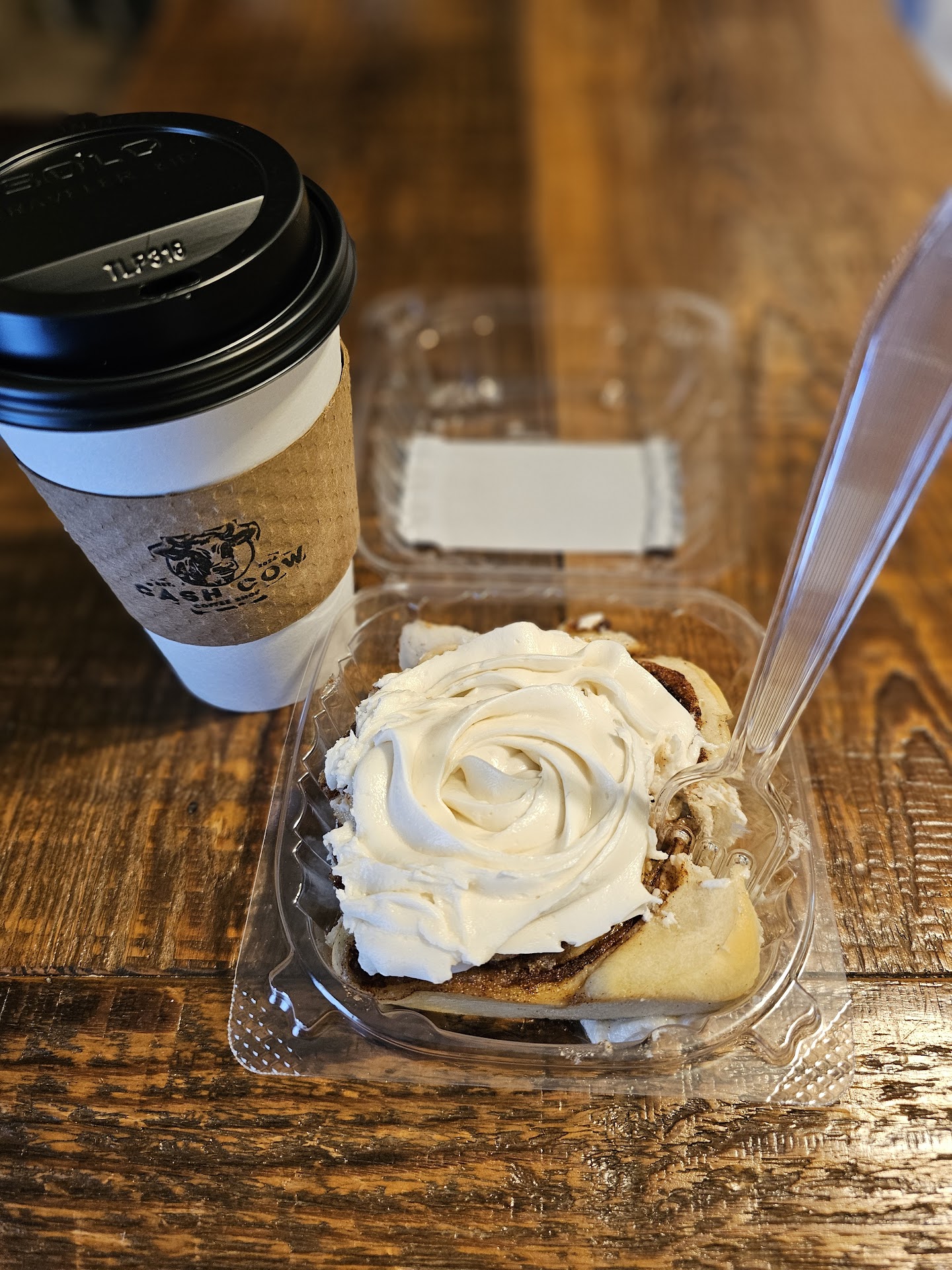 Read moreFirst time stopping. I ordered the Farm Wife and a Cinnamon roll... 1 person ahead of me in line, menu boards were conveniently located on side of building so very nice to browse to wait my turn. Got up to the window and Tori greeted me. Very pleasant, very helpful, she made my hot coffee, and oh my goodness that Cinnamon roll icing was light and fluffy!! So good! Definitely will be a new...