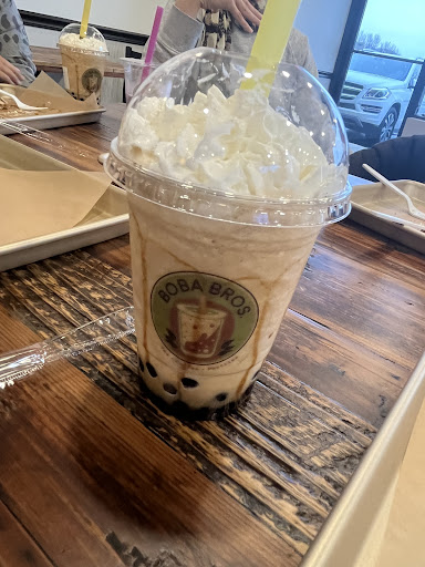 We are new to the area and decided to try Boba Bros to fulfill a late night craving of mine. "WOW!" Is what we kept saying. From the service( young man was so friendly, super patient, funny and welcoming even though we came 20 min before closing, sorry again!), to the atmosphere (we loved playing the table games while waiting for our order), and most importantly our drinks and dessert, everything was perfection! We ordered the mango creme, fresh milk brown sugar and oreo boba since we were trying to avoid caffeine so late. This is probably one of the best boba places we've tried but it's their croffles that will keep me coming back. We ordered the Lotus croffle and the churro croffle.... AMAZING. I woke up thinking about how delicious they were. We were all impressed. 10/10 recommend to everyone as we plan on being...