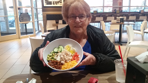 The 2nd time we went my grandson Nolan was with us. Picky eater is his middle name. The same thing Jan sits right away, we start to figure out what we want. One of the staff walks up and says you don't have to go to the register I'll help you. Wow what a relief when you have a 6 yr old with you. I want to make this clear Orland Park has 100s of places to eat. What it doesn't have 100s of is places that treat you as well as Burger 21 does. The staff is happy, funny, thoughtful and kind. It was Christmas time, they were busy but not to busy to treat us with kindness. My grandson had a little stamp crayons and a paper kept him busy until the food came. The staff kept him laughing. Nolan is picky, his grilled cheese has to be the right color, I know believe me it's rough, but they listened to him. They did. They got his sandwich right. You can't get nicer then these people, seriously. The food is very good. I had the bacon cheese burger, Nolan had a grilled cheese with fries and a vanilla shake. The fries are really good. Jan had the salad with chicken again. Then we ordered salads to go. The one I took home lasted for 2 meals. Very good deal.