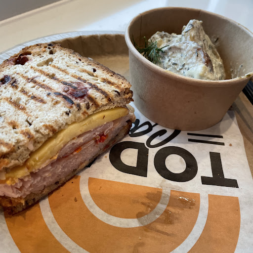 Read moreThis is probably one of the most underrated places to eat in the Universal Parks. They really have some great options, everything from sandwiches to salads to even an açaí bowl! So it’s actually pretty healthy stuff, which is hard to find when eating at amusement parks and I really appreciated it. They have a lot of fun assortments of desserts and pastries as well, although you have to be careful what you pick because a lot of them are mass processed stuff so it’s not always great tasting or high quality. For example, the key lime tart, it had great flavor but the crust was super soggy because it sat out in the display case for who knows how long. But I got the avocado toast and that was fantastic. You have the option to get fruit with it too, which I’d definitely recommend over the potato salad. There’s a nice outdoor seating area too where you can just people watch, and it’s fascinating. They do have a dine-in option even though this says otherwise. You can also do an order through the app and they will bring it out to where you’re sitting and you don’t even have to stand in line. (All prices at theme parks are stupid high so I chose not to...