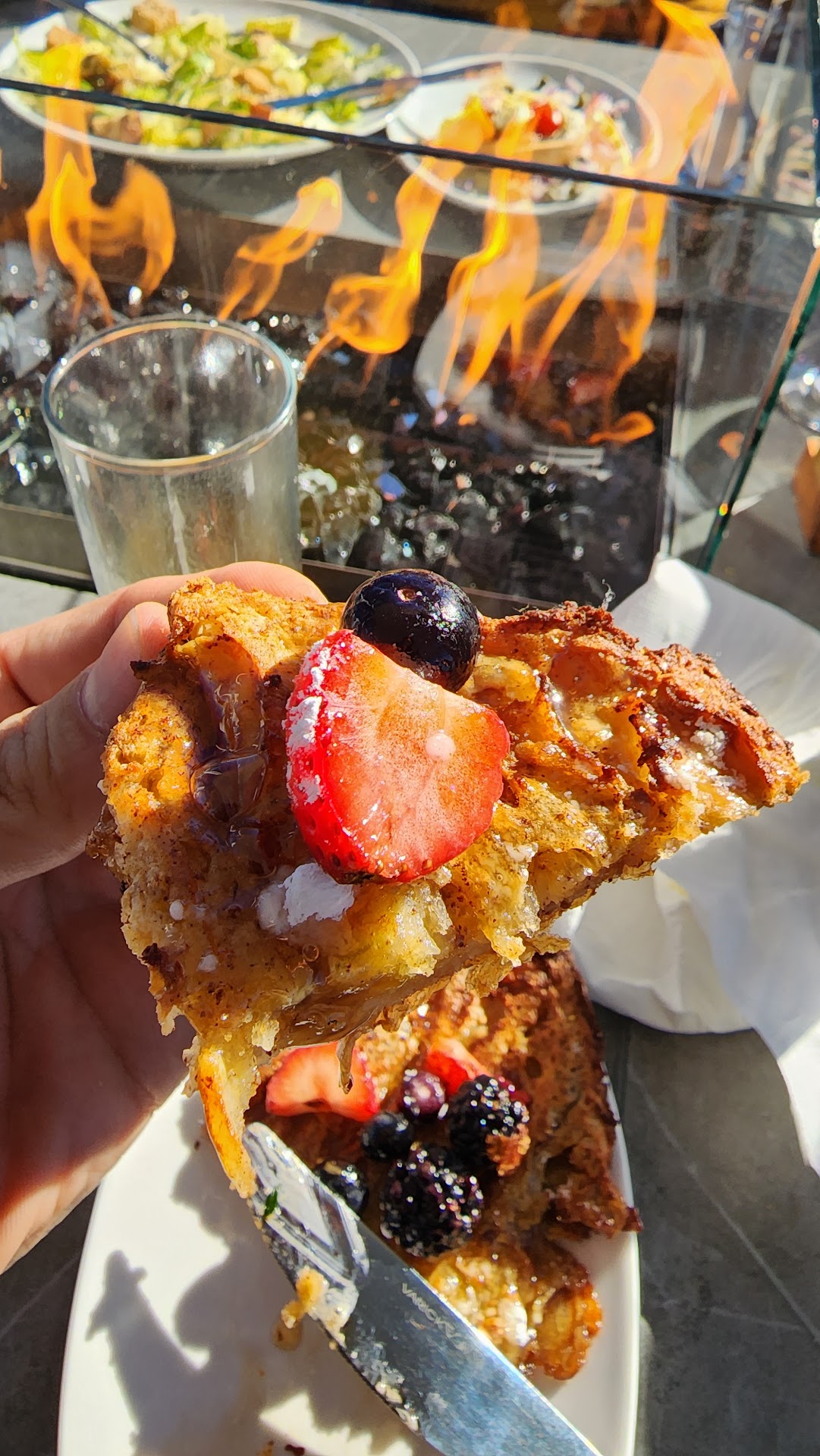 We didn't know you needed a reservation on Sunday for brunch.Jordyn politely let me know that walkins are not accepted. No problem at all, this was an error on our end but we were able to work it out and get a seat outside near the long, glass encased (open top) fireplace. From here you have a beautiful view of Downtown Orlando, an on site DJ, and what looked like a full service bar just behind us.