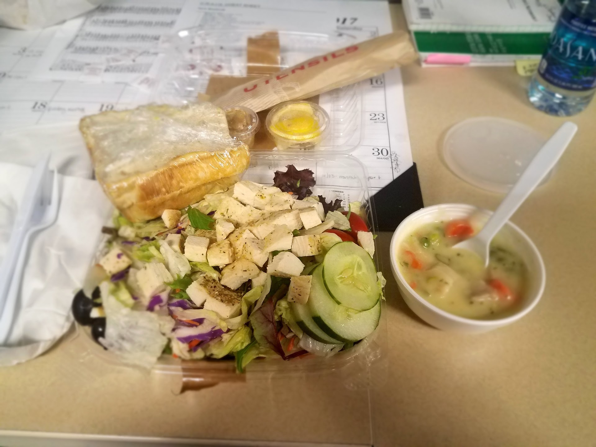 They offer quite a number of specialty soups. I had the red pepper gouda; my bestie had the mushroom bisque. The mushroom bisque was a little thicker than my bestie preferred, but both soups were very tasty & seasoned well. Both soups were super hot. It was refreshing to have the soups be served so hot, but you do need to remember to blow on it or let it cool a bit while you eat some of your salad or sandwich.