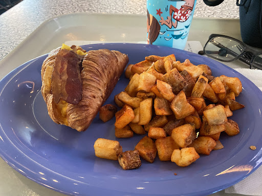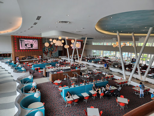 The grab and go items are also well priced for the most part. Will you spend $3 on chips? Yeah. But it's worse elsewhere. A hot tea will run you like $5 or $6 and that's absolutely outrageous even by resort standards. Most things are more reasonable however. The atmosphere is charming, a cafeteria with chairs and booths with retro diner theme with old commercials playing silently in loop on giant screens.