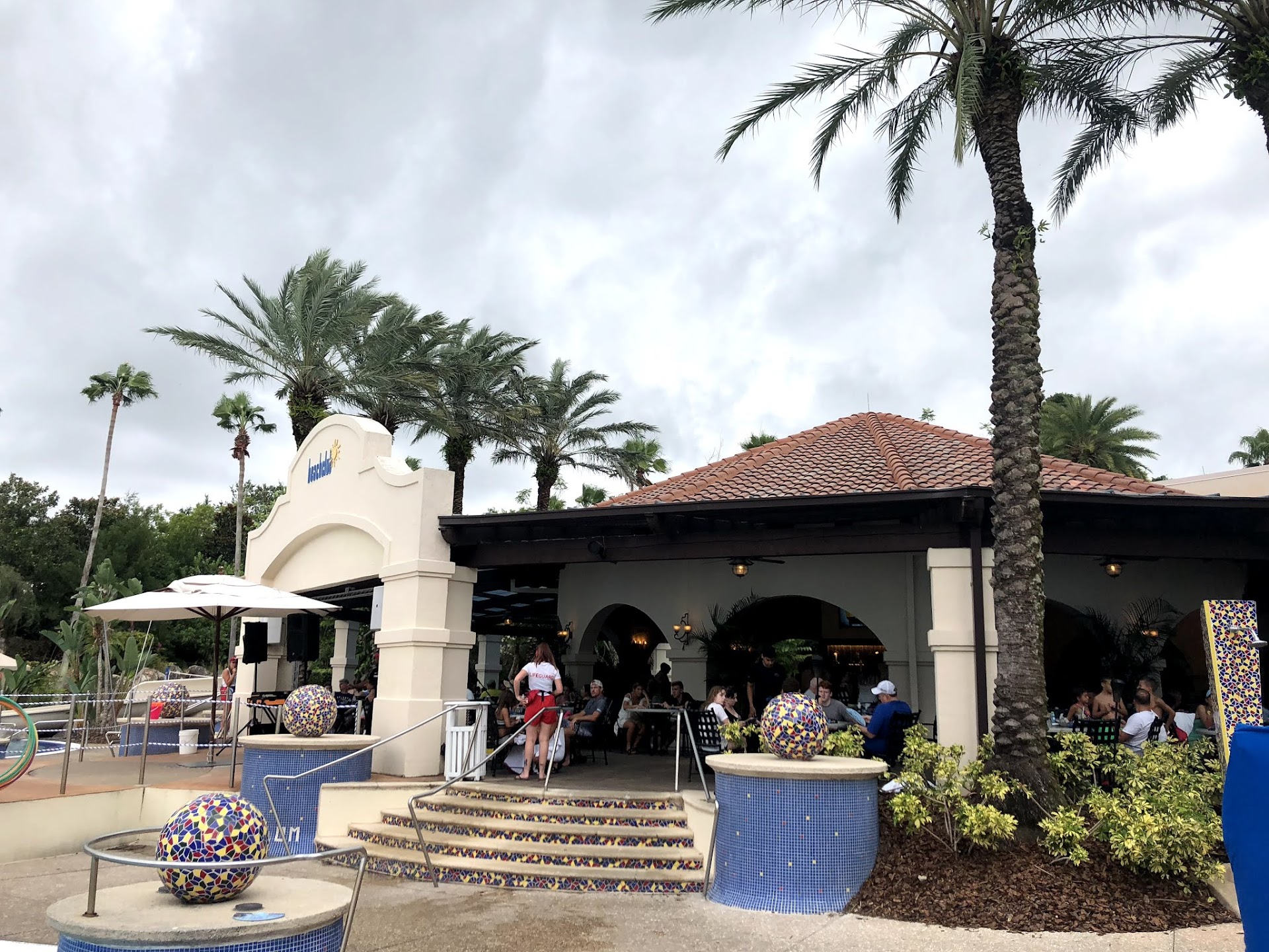 There are a few hot tubs, and one marked for "adults", but kids are pretty much everywhere. The pool goes to about 4 feet and there is a slide, with many zero entrance points. Some of the area with chairs have white sand, which is perfect after walking in some of the parks. Just dig your dogs into the cool white sand and sip on your favorite drink. The last thing that always occurs to me is the size of the pool. Because it's so large, it can be tough to keep track of your kid. If they wander from one side of the pool to another, you can easily lose track of them. And most of the 'front row' chairs are taken first, so if you opt for a shadier spot, you'll have to go back a few rows of chairs, which makes it even more difficult to spot your child.