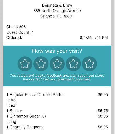 Read moreI had a wonderful experience at this establishment. Right when I walked in, I was greeted, and they told me the rundown of the best-selling items, all the different flavors, and really what “Beignets & Brews” is about! The person taking my order was beyond patient and kind and answered all my questions. It was my first time, so I found myself very indecisive because there were so many yummy items! It wasn’t busy when I got there, but this café has true potential. I could feel it. So, make this your spot now and try the Chantilly beignets before I sell them out. My friend ordered the cinnamon sugar beignets and a Biscoff latte drink. Everything was really yummy, even the complimentary lemon water. It didn’t have that weird filmy or overly thick taste. To be transparent, I thought the portion size would be bigger or more traditionally sized. It’s truly portioned for one, so you won’t feel too guilty after indulging. Also, I wish they had a “sample” beignet flight/menu item that allows you to try all of the flavors—maybe with the mini size beignets they have. Same with their specialty coffee items. Offering a coffee flight would be next level and innovative, especially because they do hold trendy exciting menu items. For the regular size beignet, I would’ve held appreciation for the ability to get different flavors in one order. Overall, I would recommend and would visit agin, maybe even bring some friends! A very memorable moment was when leaving and the server wished me a...