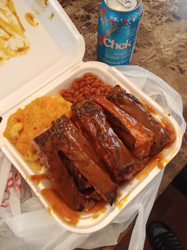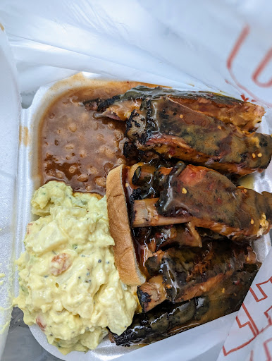 Came here for fourth of July. Soon as i walked in I knew it was gona be fireeee. It was togo order no dining available. The no ac didnt me one bit. As we ordered the line grew to out the door im from out of town so tht told me all I needed to know feel me. So boom we ordered a rib/chicken dinner as well as potato salad, greens, and beans. As we waited i noticed everyone getting slabs of ribs so i back doored and ordered a slab as well. As i waited happily i noticed the men in back sweatinggggg up a good sweat flames flaming i was so excited. I got back to resort all hotel staff wanted to know where we got the food. The aroma was all in the lobby. Immediately got in my swimsuit and when i tellll uuu this was the best rib i had in a while and thts a lot coming from a Texan!! The sweet and spicy sauce tht had its own flavor profile tht cant be duplicated! Paired with the potato salad was a hit perfect balance rlly nailed the potato salad i need the shipped to meeeee!! The chickennn was not dry very good smoked flavor and retained moisture and flavor. Forever shoppin with them when me and my fam in town. God bless yall and lets collab and make video...