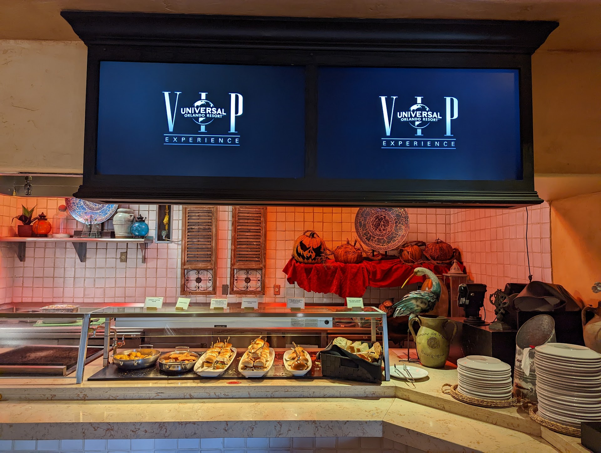 Read more!WARNING! AVOID AT ALL COSTS! We feel ripped off and spat on. Horrible service, bad bland food, very bad drinks. The place was not busy and we had to wait over an hour before our food came out. $16 "Tacos" are tiny amounts of chewy meat with a minute sprinkle of cheese. $6 Chips and queso was a big bowl of chips with a spoon full of room temperature queso. $14 Margheritas were half ice and probably all cheap marg mix. No tequila. By far the worst food and experience at ANY park we have been to in USA. I don't even know how Universal can have this place operating. Disgraceful. To top it off you have to pay on mobile in advance so you are screwed once your food comes. Just take some cardboard with you for lunch. It has...