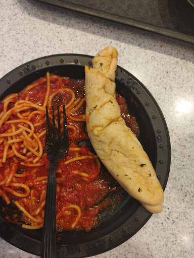As you can see from the pictures, the food was laughably bad. I don't know how any food service employee could put that breadstick on a plate and think to themselves "this is acceptable to serve." The bread was as hard as a rock and looked like it had been run through a meat grinder before making it to my plate. Honestly impressed that the lady dropping off our food was able to do so with a straight face. As you can see in the second photo, some of the pineapple was also rotten. The pasta was fine I guess, but the whole time I was eating I was just thinking about how I'd probably be fired at my job if I ever served food that looked...
