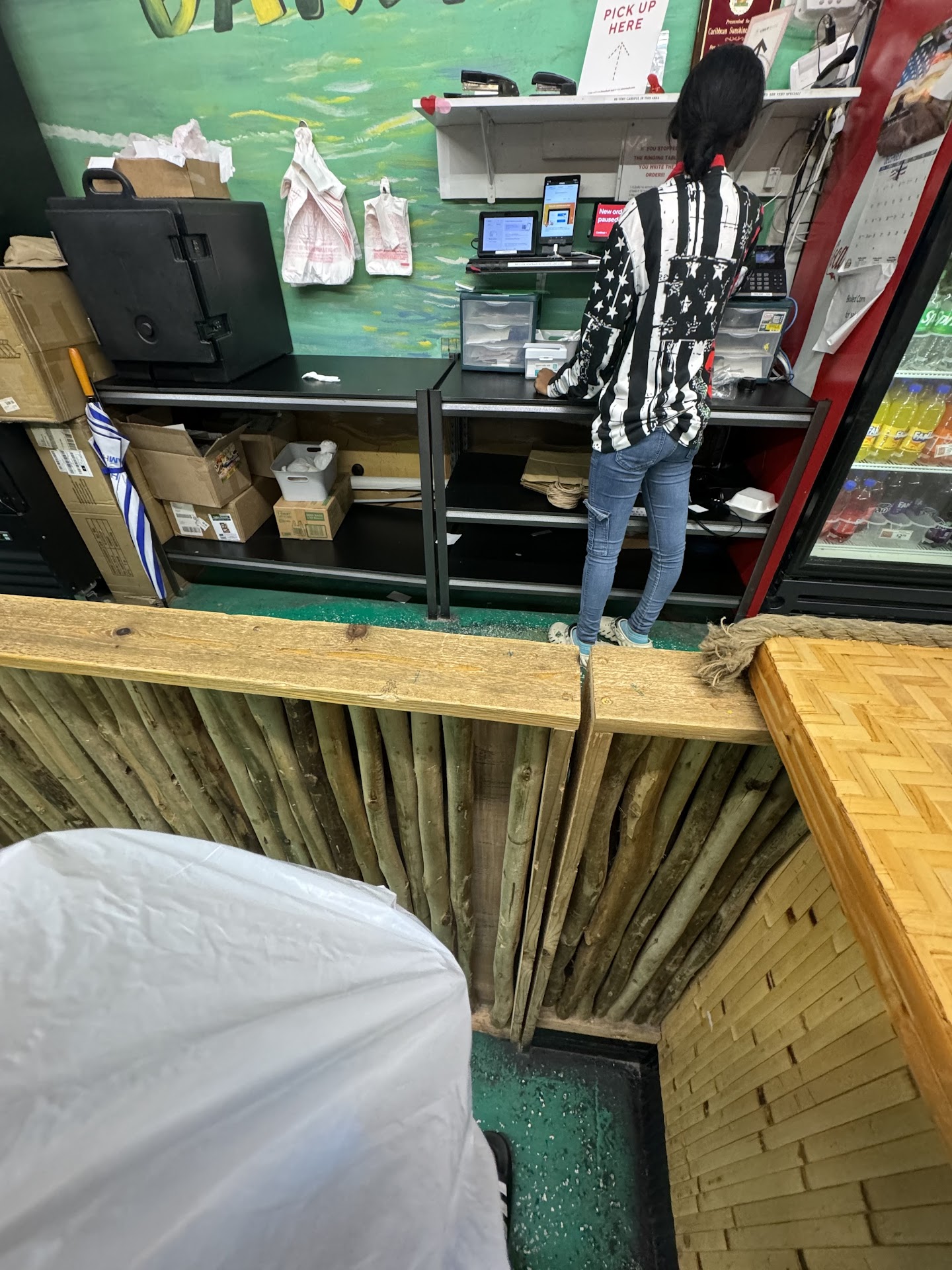 The food was ok. The curry goat was salty and the texture was a tad bit too chewy. Between that or the combination of that and the pineapple ginger drink, it left a weird sensation on my tongue, almost tingly and it felt as if it had this weird coating on my tongue following me eating it and drinking. At some point I had stopped eating not because I was full but it was becoming a chore to try to finish, so I stopped eating. My rice was fine but I just got white rice, plaintains were good, fried dumpling was ok, wasnt fond of the texture, not ftied dry enough, and the cabbage was spoiled so I couldnt eat it. When I first opened the plate I didnt pick up on the scent of the cabbage until I was about to eat it. I still tried a little bit to confirm if thats what I smelled, and for sure it was off. My girls had the curry goat as well but with rice and peas. The rice and peas was ok for them as well but my oldest didnt care for the texture of the curry goat either. She ended up trying the cabbage before I realized it was spoiled, but didnt eat any more because she said it tasted horrible. For the jerk chicken it was beautiful, I'll give them that. I was almost sorry I didnt get that when I saw the beautiful presentation. When we opened the plate though that jerk scent never hit us and we smelled the chicken closely but couldnt pick up on the jerk scent. The chicken was also dry with very minimum spice. We're used to jerk chicken that smells so good the scent hits your nose from the block as your passing whoever is making it, and they would make it dripping with juices and spicy and served with bread. Its usually so spicy that I can only have a little bit but would always try it because its so mouth watering good. Yes, so the jerk chicken was no jerk chicken we are familiar with and the seasoning was like a dry rub seasoning but still not much seasoning to the pallete. My husband asked me if I saw Jamaicans working there, I told him I heard a few of them speaking who were Jamaicans but I dont know about the chefs. None of the food tasted like any of the food were used to in the Caribbean. I'm not from Jamaica but we have a lot of Jamaican restaurants back home, and quite a bit of our foods are intertwined; the curry goat, beef patties, jerk chicken and oxtails to name a few. So, we were hoping for some good Jamaican food to remind us of home but we didnt find it here. I was supposed to try the fried fish, it looks like they have snappers, and we love fried snappers and make a lot of fish and seafood back home in the Caribbean, so I would still go back again to try the fish and oxtail, then I'll be able to say whether or not I'll go back. The beef patties, were ok but doesnt come close to home, it was too crusty. The drinks werent bad. The ginger in the pineapple ginger drink was potent and the pineapple was sweet, too sweet for my liking. It was made with pineapple nectar I believe, and I'm never a fan of nectars because their sugar content is too high, and its usually too thick. My neice liked the pineapple ginger drink; however, and my oldest daughter liked the passion...