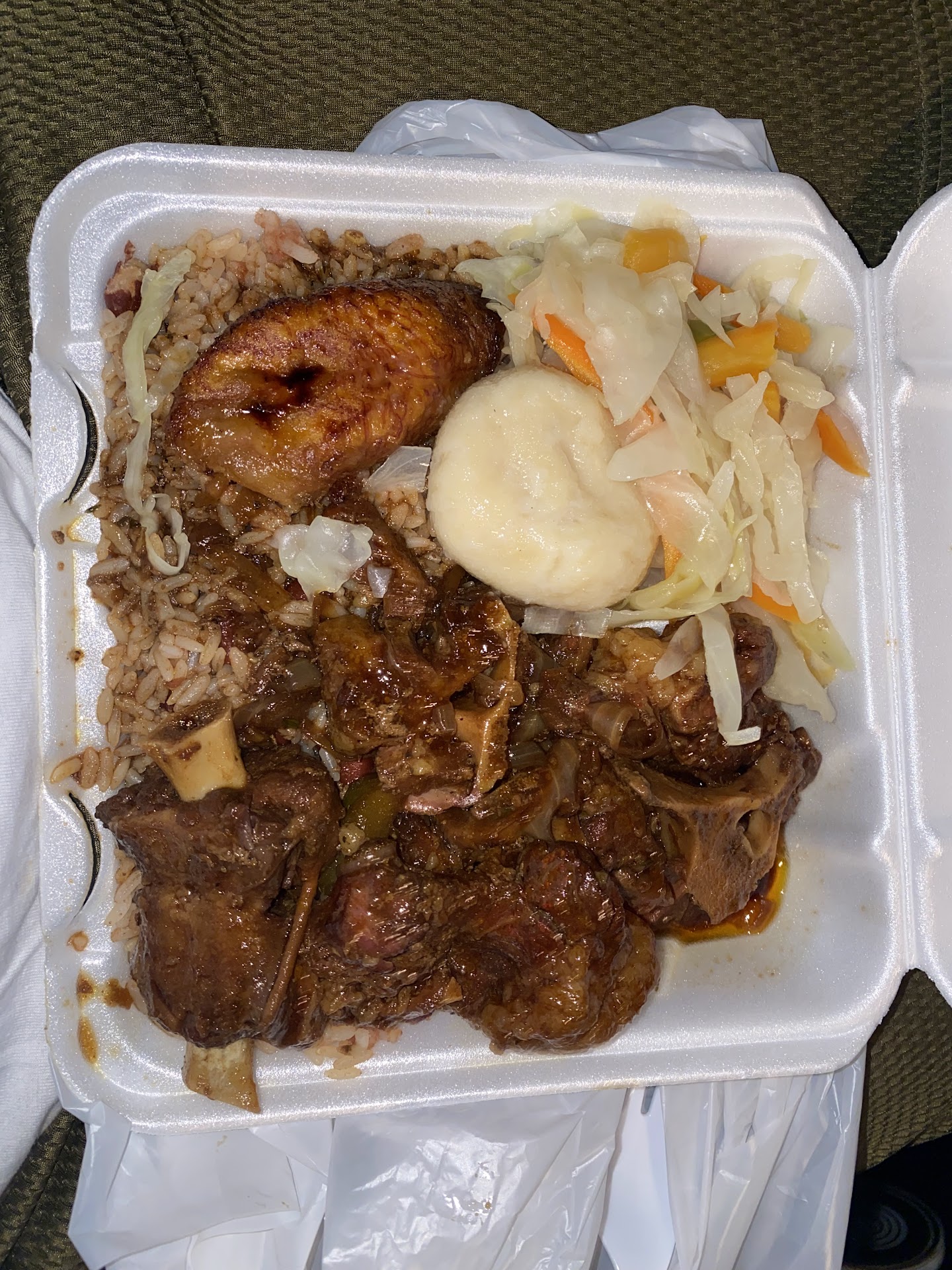 Read moreSo this was my first time trying this place and I honestly could have not tried it but since it’s very popular I thought why not. I have this rule where I try the rice first because I’m a rice person n that tells me everything I need to know about a spot. So I originally was going to get the jerk pork with the rice n extra gravy but the lady said they was out. So I got oxtails instead (I was going to get the pork with oxtail gravy to see how the gravy taste first before I got oxtails on this trip just so I can see if buying the oxtails would be worth it) but anywho , So the rice here was very hard, bland n it taste old (even with gravy added to it) , the oxtails are very bland as well with a faint taste (like they don’t marinate they meat good)there’s really not much flavor to them. Like the taste is there but it’s not. The raw / uncooked dumpling (or whatever it is) was not good (I don’t like dumplings tbh) unless they are cooked/fried. The cabbage is absolutely bland as well but has a nice crunch n texture to it. I hate bland cabbage my moms make the best cabbage. Overall, the oxtails here are not all that. I miss my hometown oxtails n my moms oxtails as well because I can’t seem to find no place here in Orlando that makes EXCELLENT oxtails. And for the price which was exactly $18.56 for a small that basically had 4 pieces of oxtails in them (one big size oxtail n the rest was small) was not worth it either. You’re better off getting a large because they pile that plate up. You would think the small would be kindav equivalent to how the large looks but nope they skimp you with the meat on a small. If I didn’t ask for extra gravy you would be able to see the individual 4 pieces of oxtails. You should not be done with your meat in less than 5 mins lol but I guess that’s what you get when you get a “small”. I’m happy I got a small tho because I would’ve been upset with the large (all this bland meat n rice for $23 plus no ma’am) Yeah I give this place oxtails a 4 out of 10. You’re better off cooking your own meal at home. On a good note the service seems nice, the young lady at the front desk was nice n professional. I may come back to try the jerk pork n oxtail Patties.