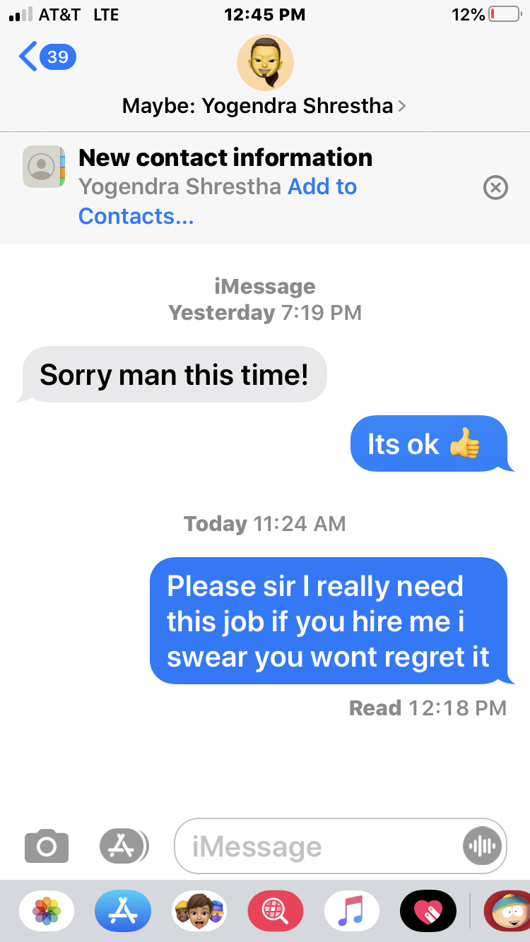 Read moreThe hiring manager is not professional he told me to come in at 10 am and then when i got there at 9:50am I helped open till 11 and when he came at 11am he told me âsorry man i cant hire you â but he wouldnt tell me and then i said how come you didnât call me and he said that he txted me but that text doesnât even make sense i feel that if he was professional he would have called me and told me . But no he didnât so i was there for an hour opening. So basically he wasted my time because i have to ride bike there and i even got there early so i can be there on time because i had to go over hills on a bike .i feel disrespected because i was really excited to start working so i can pay my bills, also because i was there for an hour...