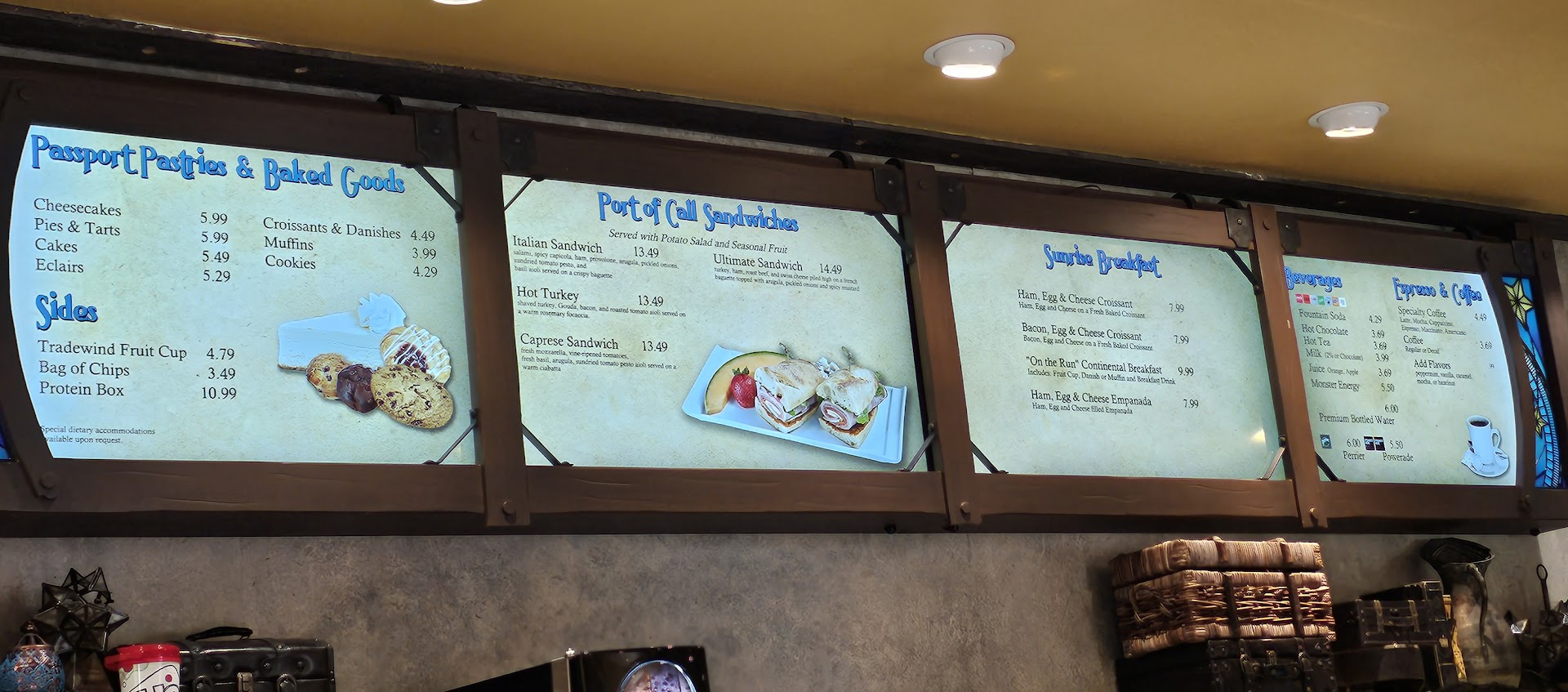 And donât worry, if you want a really meal to go with your caffeine and sugar, they have that too! There are some panini sandwich options, and from my experiences with paninis at other restaurants in the park I think they are actually pretty good!