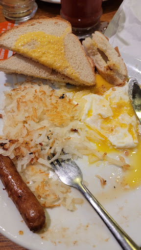 Read moreWorst service n food I ever had at a Denny's!! Our servers name was care bear or something like that, who knows as we barely saw her. It's 10:15am n my bf wanted the sirloin, to which she told us, it isn't available until after 11, nor were mashed potatoes or mac n cheese (which she kept repeating those 2 sides) Mind u, I had already ordered the slamburger prior to him trying to order. He couldn't decide so she said I'll give u a few minutes... cool! We notice on the breakfast u can order steak n eggs. So we wait about 10 mins (wasn't busy at all) n she came back n we asked, why u can get steak n eggs but can't order the steak dinner, again repeating 2 those 2 sides that weren't available, but not telling us what he CAN get. She got real rude n snippy with us. He placed his order for steak n eggs nonetheless. About a minute later, my food came out. Like who does that? Why put my order in n not wait? We actually had almost decided to leave, but said screw it, we was already there. I get my burger n it's literally pink on the inside. I told her I wanted it well done n she said it's the ONLY way they cook burgers due to safety reasons. I couldn't eat it n immediately felt sick. When we got the receipt she put medium on how I wanted the burger, as I got an attitude with her when she got rude n snippy with me smh I realized she probably did it on purpose. Also got charged $1.29 for cheese on hashbrowns which was almost non existent, but didn't get the cheese on his eggs. Our server, didn't deliver our food, nor come back to check on us, refill drinks or anything til she dropped off the check. She definitely don't need the name care bear with...