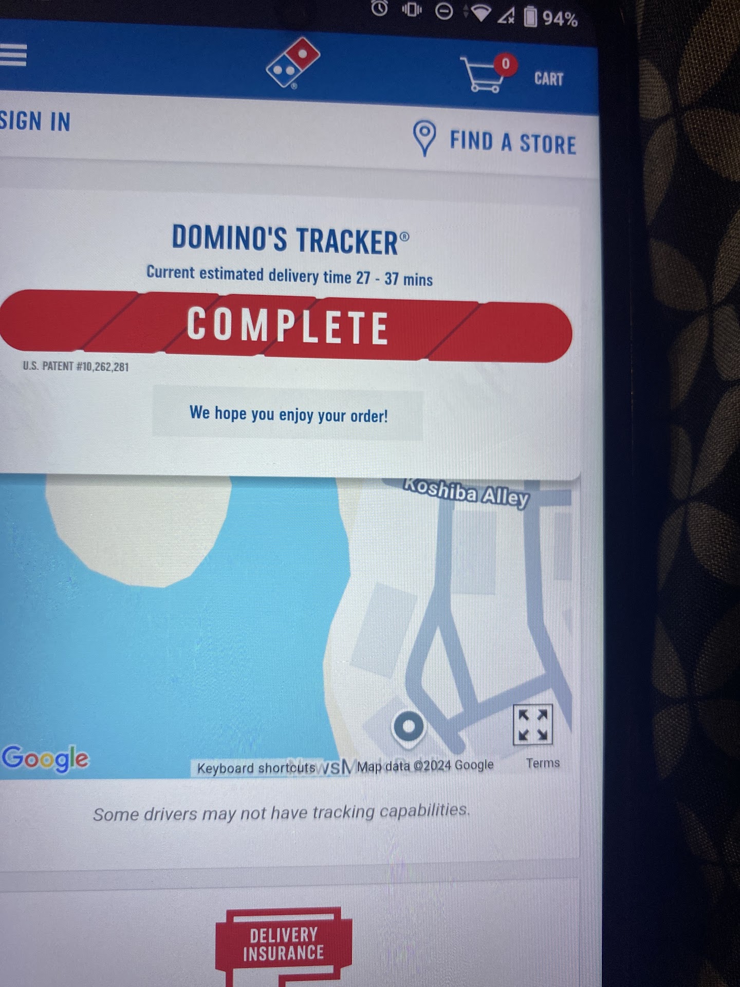 (EDIT) my order finally arrived at 10:36pm. 2hrs and 6 mins from when i ordered it. It seems theres only ONE driver because he had alot of orders in his car. Meaning A lot of ppl would receive their food cold. I had to heat mine up. If you have a brain, donāt order from here and just pick up if you can. If you canāt then choose another store to order from! PS I ordered before 8:30pm but because i donāt recall the exact time, i rounded up. Do better i did. At least next...