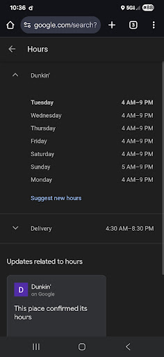 Read moreFor the past week from 11th of August to today August 19th. I will order my drink for pick up either inside or drivethur by 402am and the store will be close doors too. No lights on mean while my order has done been approved and store says open on the online if it wasnt it wouldnt go through. But noone their but the baker . As of this morning I had to wait for 1 whole hour to get my coffee made ordered at 410am noone their came back 5am as someone was finally there. I did drive around wonder what in the heck is going on when store says open at 4 but in reality noone opening it until 5am. Then the other morning as well I walked inside store as my mobile order went thur its 405am this worker said to me were close until 5 then I said no my drink as been order and approved which is now beeping on machine . Told her it says 4am you open she didnt know what to say to me. And me not trying to rude but I said you need to look at your window and times as it say in big bold now open 4am. Thank done complaining , as these new workers need to get it together, as im not the only one who has waited and...
