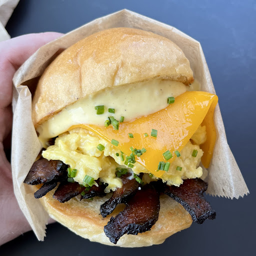 Ā Ā Ā Read moreVisually, my bacon, egg, and cheese sandwich was stunning, very Instagramable; however eating it was a bit less enjoyable. The brioche bun was a lil on the doughy side and could have used a longer toast to crisp it up. The eggs were very bland, barely even tasted salted, and there was a tiny piece of shell in them too. The hollandaise was a bit tangier/sour than I prefer. On the plus side, the bacon was plentiful and pleasantly crispy.