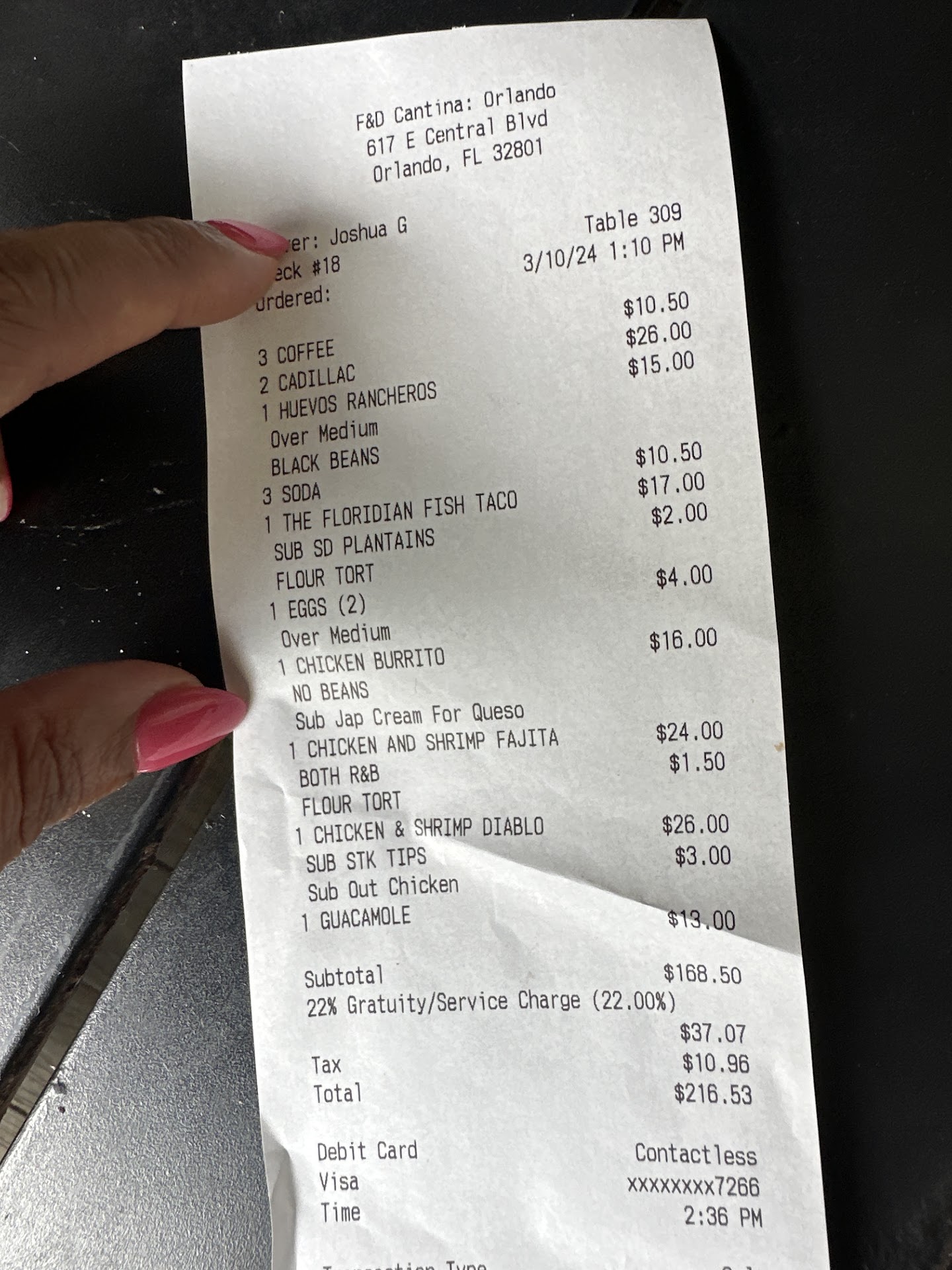 Read moreDisappointing Experience at FD Cantina in Thornton Park!!