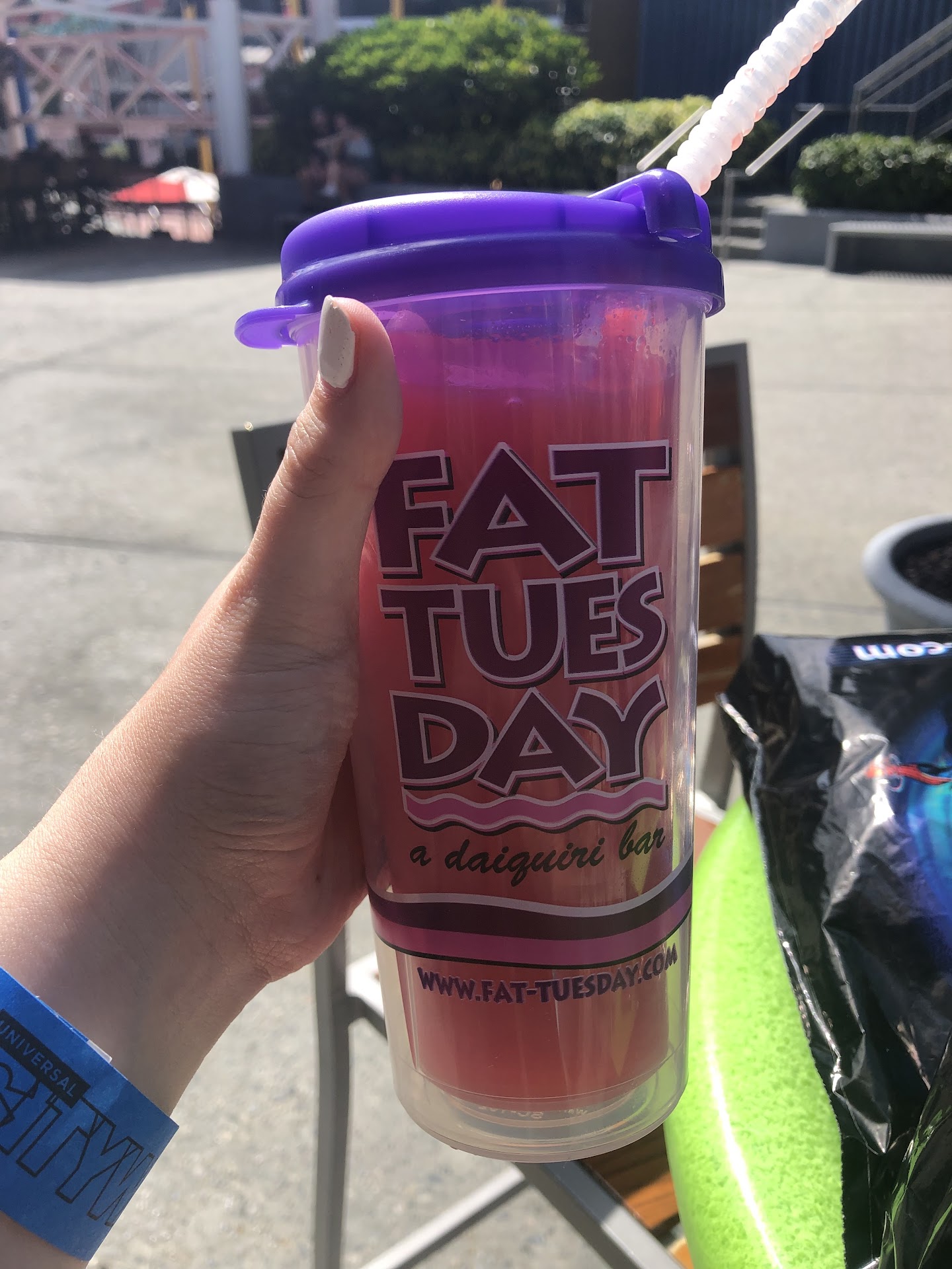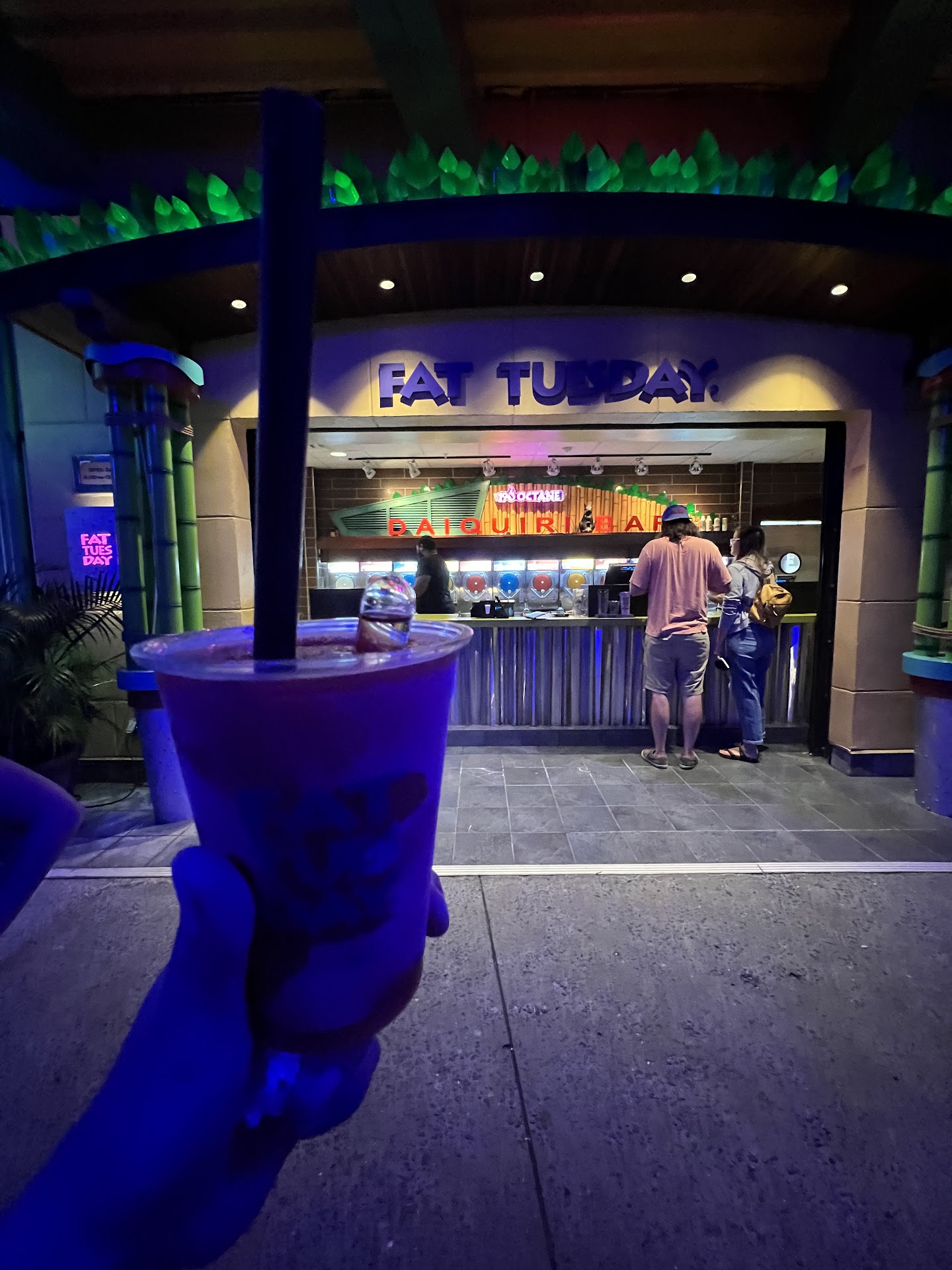 Read moreMy first experience with Fat Tuesday was in Biloxi, MS a couple of years ago. I enjoyed it thoroughly! They provided samples so that you can make an informed decision on what you like to purchase. This one did not. I don't know if it was because of covid or not, but I was a little disappointed. Not only that, but the only way to get to the site is by parking at Universal parking and walking through Orlando Citywalk. The Citywalk seemed great, but I was not prepared to go through parking in the Universal garage, then walking to the Citywalk entry, going through a temperature check, then going through security JUST to get to this store. Once we finally got into the Citywalk, it was still a good 10 minute walk to the site. They had set up a couple of small tables about 3 ft. from the counter and had 2 (cashiers?) taking orders from the small tables (which had debit card machines on them so you could contactless pay). We asked about a couple of the flavors and the cashier was not very insightful. My fiance got a drink which I sipped to taste before ordering my own drink. The cashier did not explain that there were different cup options or sizes and was very mechanical in his manner. It was quite...