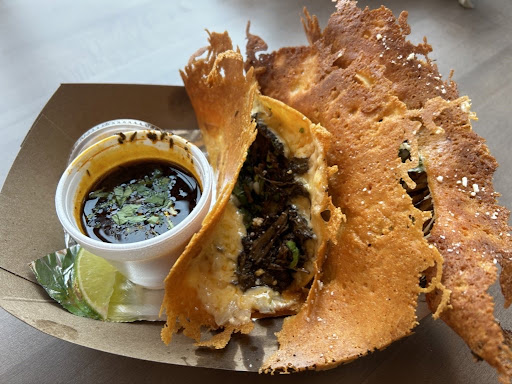 The tacos are stuffed and you get a lot of food. I rarely ever finish all three tacos. There are multiple options for protein including beef and chicken! My favorite part of these tacos are the crispiness and cheesiness..the outer cheese crust is the best and one that you can't get anywhere! They are now offering new menu items and the eggrolls are SOO good.