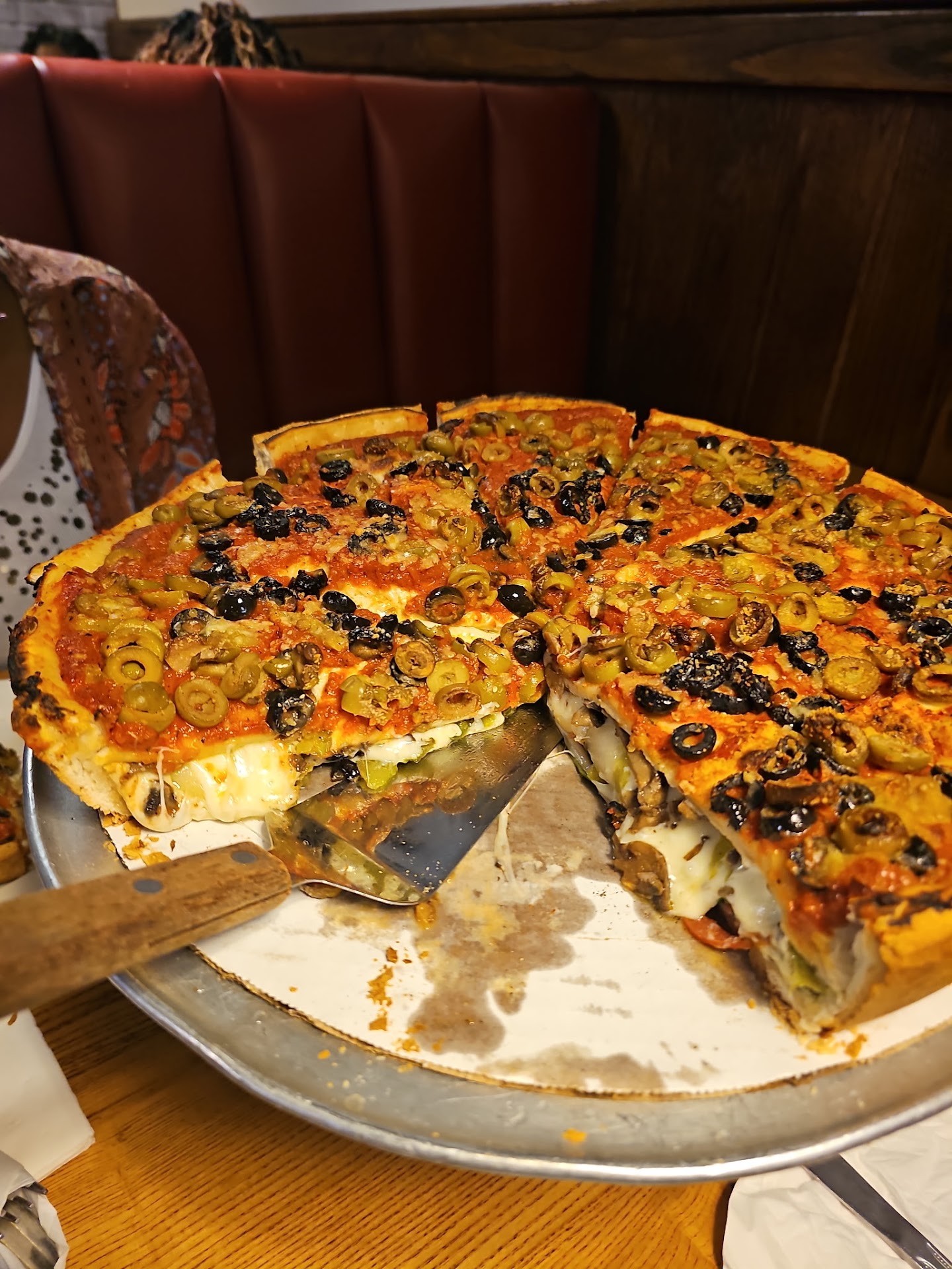 Read moreWe were in Florida last week and decided to eat here. The appetizers were great, and we should have stopped there. We ordered a deep dish with over possibly 11 toppings, and we've done this many times for a traditional pizza. Well, we clearly understand that it would take longer to cook, no problem. However, we definitely didn't understand, nor were told the crust would turn into thin over cooked burned thin cracker type crust instead of remaining it's consistency of a think deep dish heavy fluffy crust! After waiting over an hour for what we thought would be an amazing deep dish experience, I was totally disappointed as we bit into a thin cracker type over cooked burned crust. A good waitress and cook should have informed us as we could have just ordered a thin crust pizza with many toppings, and it would have tasted better. We ended up with a lasagna type consistency on very thin burnt crust. Brenda, the waitress, was also not good. She's the type who will periodically check on your table and disappear if she thinks you're good, apparently. She left the appetizers, and since the pizza took over an hour to cook, she didn't return until it was close to being cooked, apparently, which left us thirsty. We watched a male waiter attend his table multiple times as we wondered where she was, the joke became, maybe she's cooking the pizza! After leaving, we also thought about how we just purchased an oversized lasagna that we literally ate three slices out of and paid 77 dollars for it because, again, it was a terrible waitress. Most often, we've had a waitress look at a specialty pizza and then add the cost of our additional toppings, well, not Brenda. Brenda offered poor customer service and charged us for each topping, this expensive nasty pizza which tasted like a combined salt factory because the olives were loaded on so heavy and traditional sauce wasn't added as requested now was that on observed on the bill. First time and last time experience here, if we're in Florida or any other location! And with the nasty pizza being our focus, we didn't see that 3% surcharge was automatically added to the bill. This would have definitely been removed if identified that day. We left here dissatisfied, and if you visit here, please...