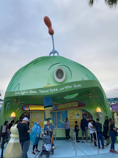When creating a Dr. Seuss themed section of a theme park, one of the bottom lines is that there has to be a restaurant serving GREEN EGGS AND HAM. Come on, itās iconic! So thank goodness for this lil cafe.