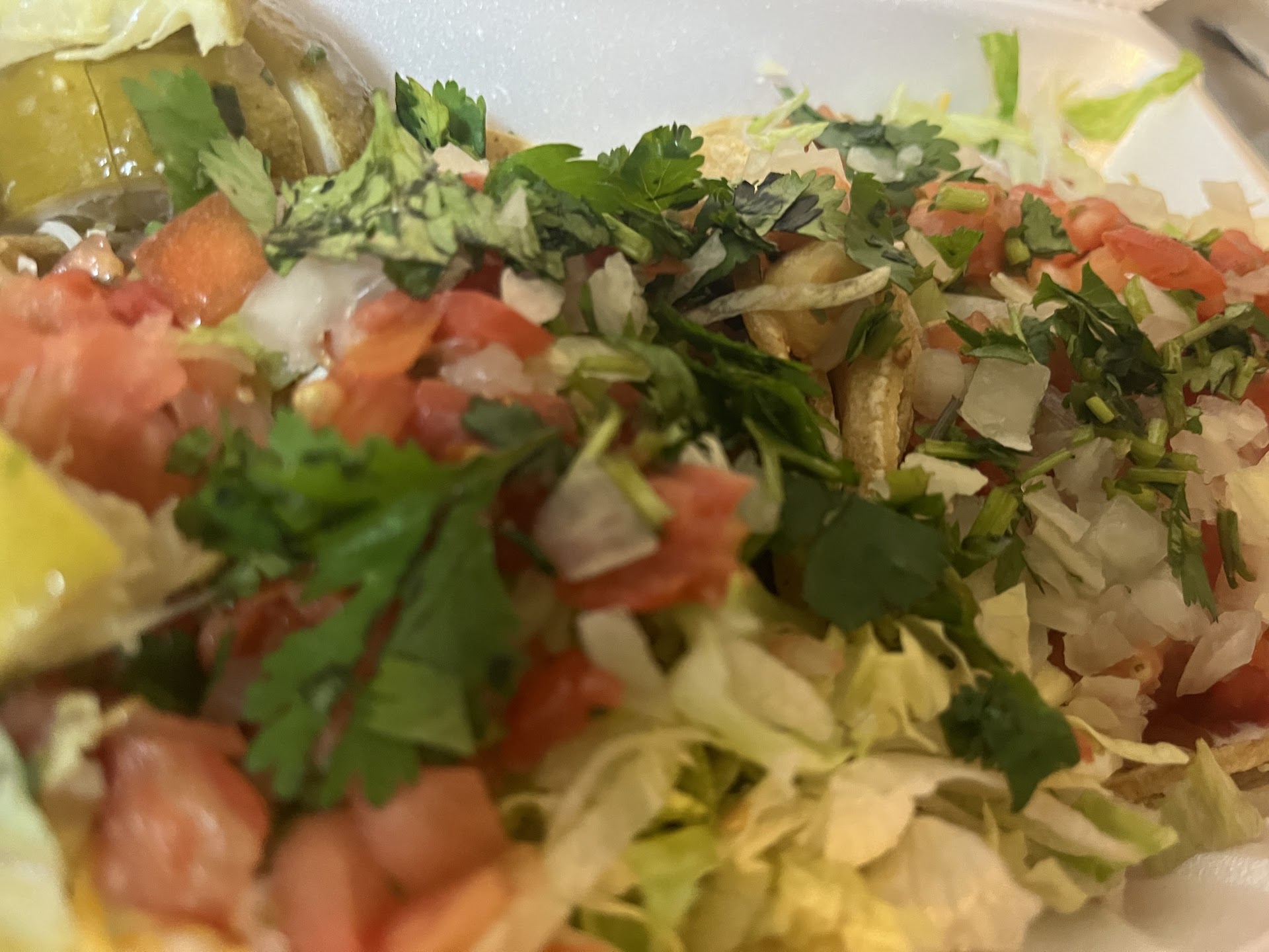 I live 6 minutes away and opened my food right away and... the tacos were disgusting. They were soggy and swimming in hamburger grease. Which is all they tasted of - hamburger grease. They weren't edible. The chips were stale and the salsa tasted like straight tomato paste. The enchilada was ok - if you like having just green salsa for dinner (I couldn't find anything else in it under the lettuce and salsa.) All of the rice was crunchy and under cooked - I'm assuming based on the color they tried to season it, but it just tasted like plain, half cooked rice. Overall the food was bland, flavorless and poorly prepared.