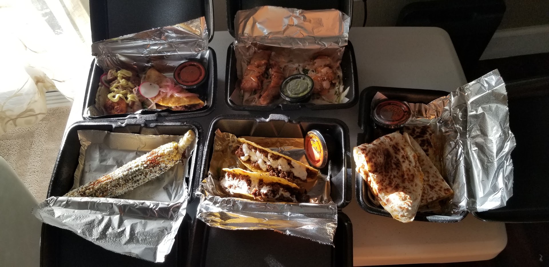 Read moreHighly recommended place to get your taco fix. Simple easy menu, easy ordering in person, great selection. Fast service. We went in to order, few minutes off of the 528. Lots of parking, outside tables available. We ordered and they brought our bagged order to me as I sat and waited outside. They did forget my chips and salsa I paid extra for, I called but they didn't answer. I will update if they rectify the next time we go back. But the taste of what we got made me forget! We got the street corn, perfectly grilled and seasoned. That alone was worth the trip. We got 5 different tacos. Ground beef, Birria, shrimp, pork and fish. We also got the chicken quesadilla, which my picky teen declared the best she ever tasted. They were huge. They have an awesome Sunday brunch deal I want to try. Unlimited mimosas $15! All the food was phenomenal and so fresh. Each one so different than the rest. Cannot wait to go back. The pictures speak for themselves. Shrimp was my favorite. The Birria came with a beef dipping sauce that was sooooo darn good. Beef stew...