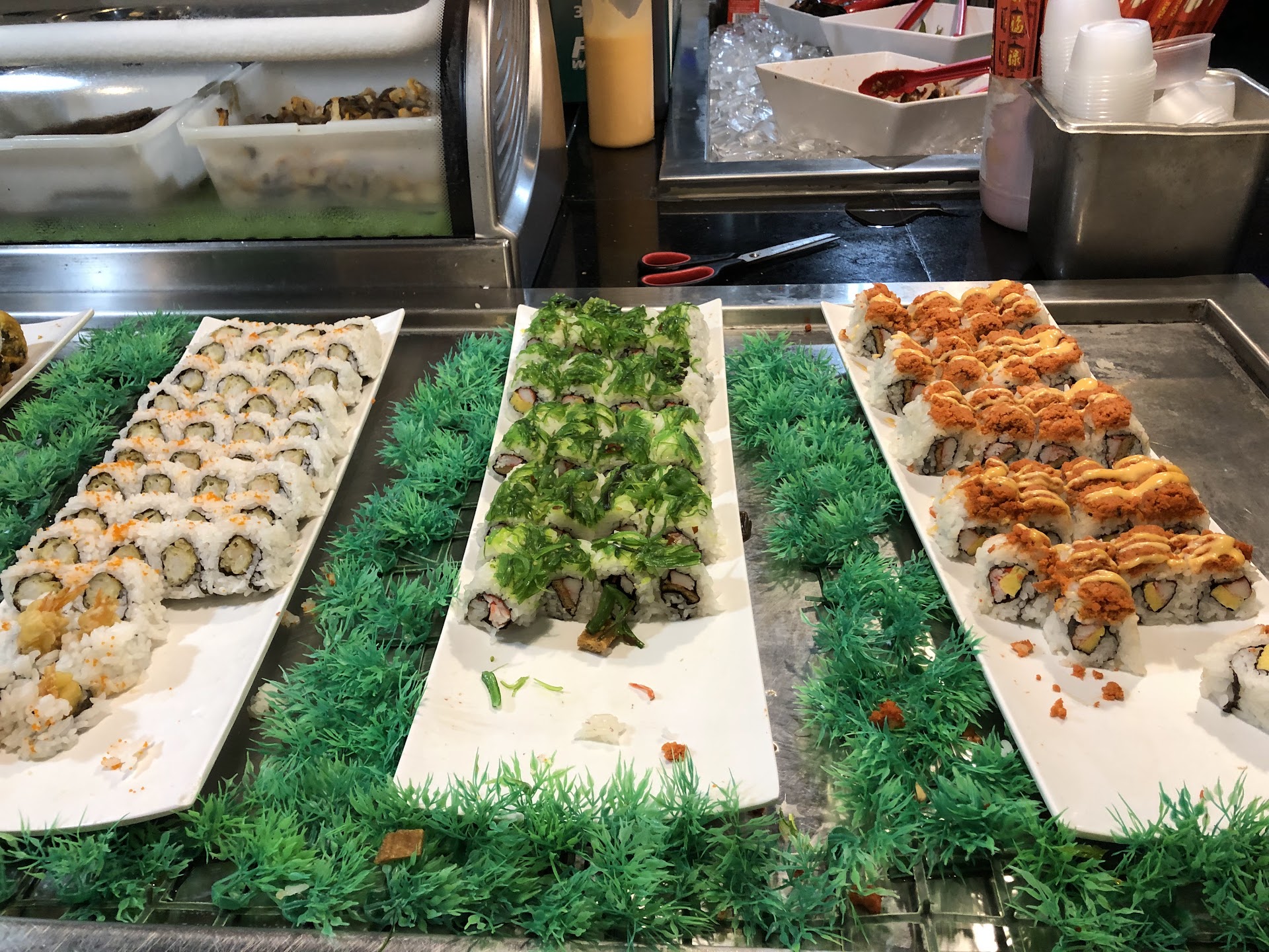 They also had a hibachi table and chef but I didn’t get a chance to sample it. The place itself is rather ample, and the rows of food, take up a large portion of the center of the restaurant.