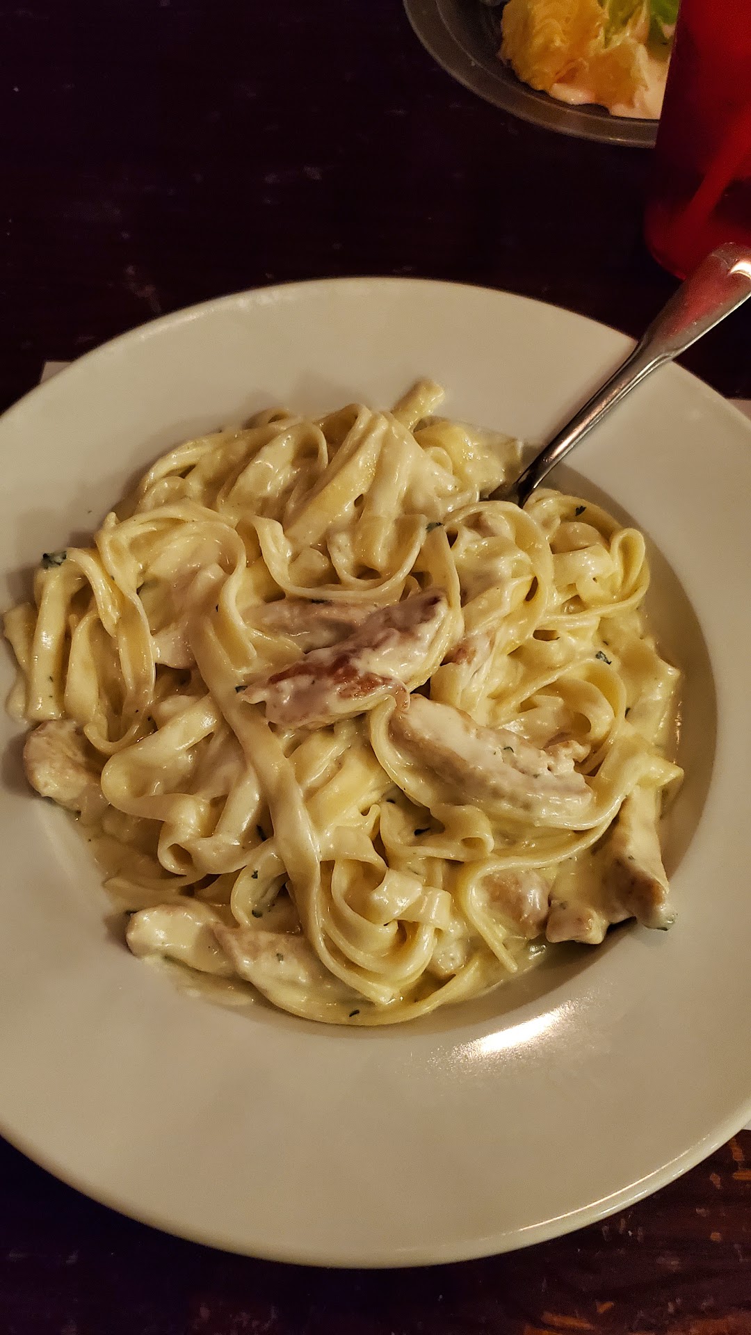 Ā Ā Ā Read moreCame for late lunch today with my 2 daughters. All the staff are friendly, helpful and greet you. The restaurant is nice and cool, which is appreciated on a hot day. I ordered the special, which was alfredo with broccoli, and was permitted to share it with my younger daughter as we both can't finish any plate at a restaurant. My older daughter ordered plain cheese pizza. The Alfredo tasted good, different than the usual flavor. The sauce maybe was a little too rich for us as both my daughter and I started noticing indigestion pretty quickly, so we only ate a little. I'm sure not everyone will have the same experience, we have sensitive digestion. The salad was good and I enoyed it, and the garlic bread was good. I didn't have any of the pizza, it didn't look like my style of pizza (a little greasy, which my stomach can't handle), but my older daughter liked it. My glass did have a small bug in it, which was unusual for a nice restaurant but I guess could happen anywhere, I unfortunately didn't notice it until after I took a drink of my water, but our server apologized and brought a fresh glass quickly. Which brings me to the area I'd like to see improved! Please get a water filter. I understand water is given at no charge for the customer so maybe it's not a priority, but this city water here is undrinkable when unfiltered. My daughter actually said it was the worst water she'd ever drank. I had been to this restaurant years earlier and had the same experience so I didn't even try their tap water and ordered a bottled water, which the 3 of us ended up sharing. This was my grandmother's favorite restaurant and we ate here today in her honor after having visited her grave today. (She always got their spaghetti with meat sauce).If invited by a friend/family member I would come back, and try a pasta with red sauce...
