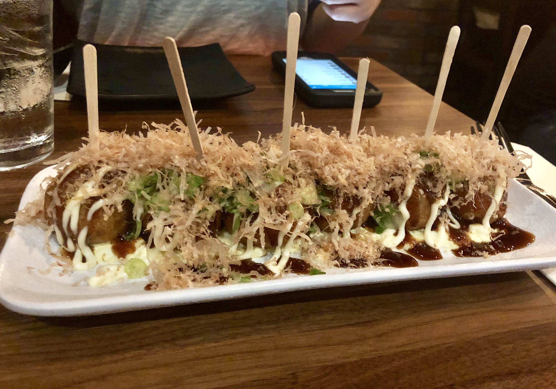 I was dissatisfied with the takoyaki, as after dissecting it we found a couple tiny pieces of octopus. Also it was cold, and was likely sitting out for some time. Presentation was nice, and flavor was ok.