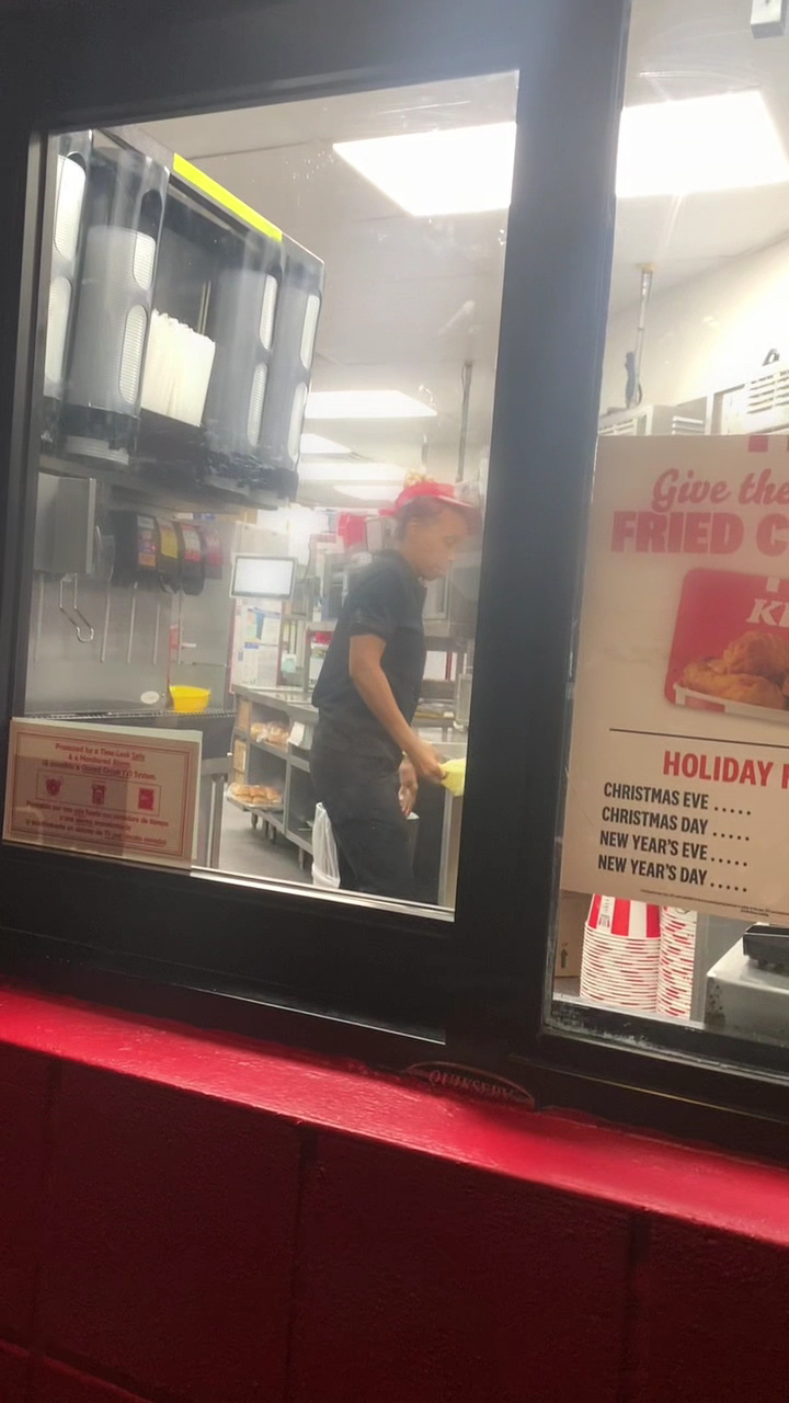 Read moreWent through the drive thru. 2pm on a Tuesday. The worker starred to scream Welcome to KFC and started to rap, then another worker stopped them and said "What do you need?* my daughter behind me asked for a "Spicy Chicken Sandwich" the worker said "We don't have those" and my daughter then asked me "what did I get before" and that's what we got. So I proceed to order her 2 mini Sandwiches. Then the work was about to give me the total and I said "I'm sorry, I'd like a 2 piece extra crispy meal" and the worker snapped and said "We don't have that!" I said "the meal?" The worker said "we don't have any extra crispy anymore, only original" I said "wow, ok then I'll take a 3 piece tender meal" the worker said "I said we don't have anything extra crispy!" I said, "ok, I didn't ask of extra crispy tenders, that's fine" the worker said "side (with attitude)" I said "Fries" the worker said "Drink (with attitude)" I said "do you have lemonade?" The worker said "read the menu!" Then another worker got on and said "yes, we have lemonade pull around and I'll give you a total" I pull up and 3 workers are there making fun of me, 1 hands me a bag, the one behind is still talking about how "if [I] knew how to read, ain't nothing on there say extra crispy" another worker handed me my drink while I paid the other worker. I said "Thank you" then the one behind said "Bye bye" (waving with her hand, sarcastically) I looked at her and said "have a nice day!" when I started to drive away, the say worker stook her head out the window and yelled "Next time go to Popeyes" The 2 Sandwiches were tiny, smaller than a Hawaiian Roll with a piece over chicken smaller than my thumb. How is that $5?? The 3 piece tender meal .. the tenders were about the size of my pinky, dry, hard and cold. And the biscuit was rock hard totalling $10???