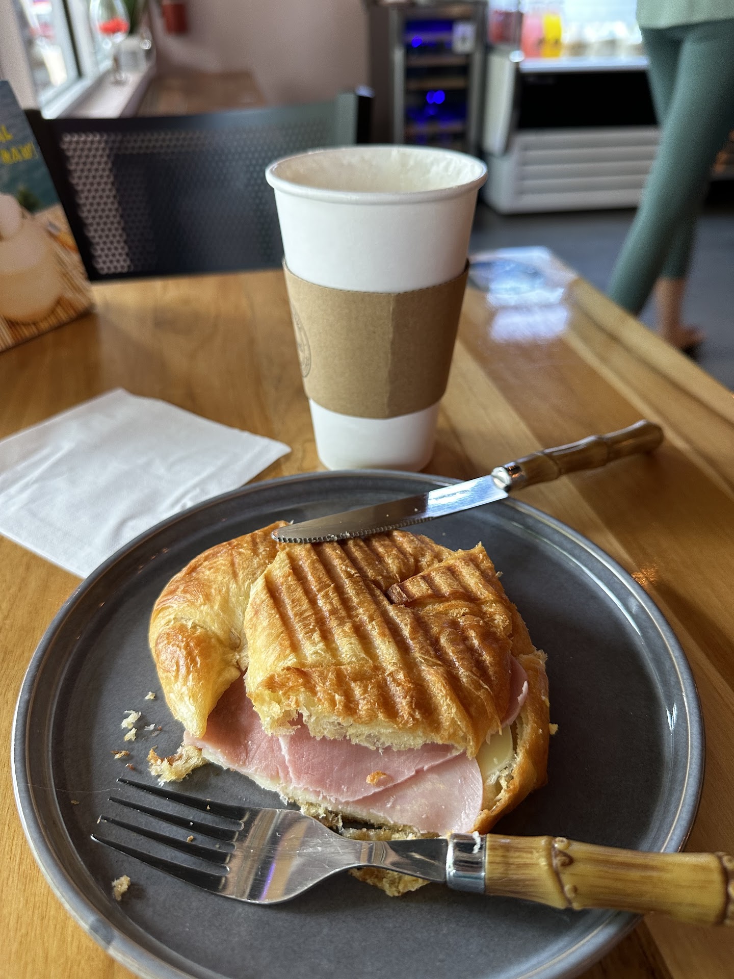 Read moreI loved all the healthy options and the super friendly staff. The Cafe con leche was great BUT I ordered the gluten free panini with chorizo, red onions, ham and lettuce......TERRIBLE!!!! The panini was $7 for THE BREAD ALONE, and each topping was between $1 to $3. SERIOUSLY???? AND it doesn't even include a smear of mayo, mustard or oil, that is also an entra charge. I get they need to make a profit, but this just ridiculous. My sandwich was $11 Had ONE slice of ham, a bit of shredded lettuce, some sliced mushrooms and sun dried tomatoes. No flavor at all. The driest, smallest panini ever (glasses in the picture for reference) even if it was gluten free. How can they advertise this as latin food? Isn't Latin food known for flavor and generous portion sizes? My gf had a croissant sandwich with sweet potatoes fries and a Cafe con Leche. It came down to be $60.... I wish i could've written a stellar review. People need to understand healthy does not equal tasteless. Cant believe it has a high rating. Either people lost all their taste buds during covid or they only ate the sweets. So...
