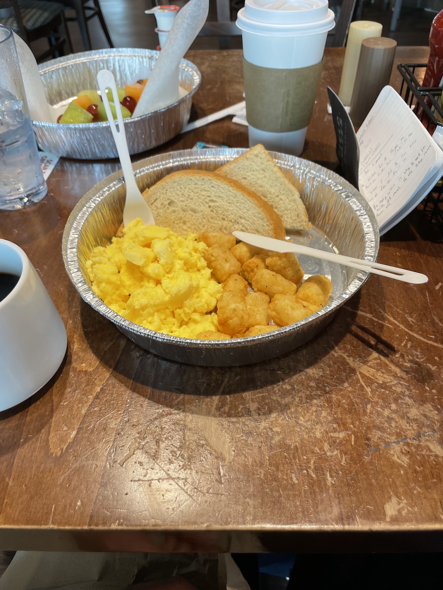 I am not often a complainer, in fact, I usually donât write things like thisâŠbut I feel like people should know what theyâre getting into when it comes to airport food. Thereâs so many layers of wrong here. The bartender working was so sweet after she noticed I had been sitting for 10 minutes, she explained that you had to order through the QR code. Cool. I ordered, even though the website didnât give an option to add an egg to avocado toastâŠ.even though itâs on the menu and on the website. 10 more minutes go by, she explains I have to go get my own coffee at the coffee bar and my bottle of water from the cooler. Cool. I go up to get coffeeâŠthe stirrers are compostable straws that melt in hot coffee. Cool. 15 more minutes for foodâŠthe stuff is kind of bland. Whereâs the salt and pepper? Hmm. Not on the table and no server to ask for it. Make sure you tip! I know itâs not their fault butâŠdang. Itâs just a weird set up to me.