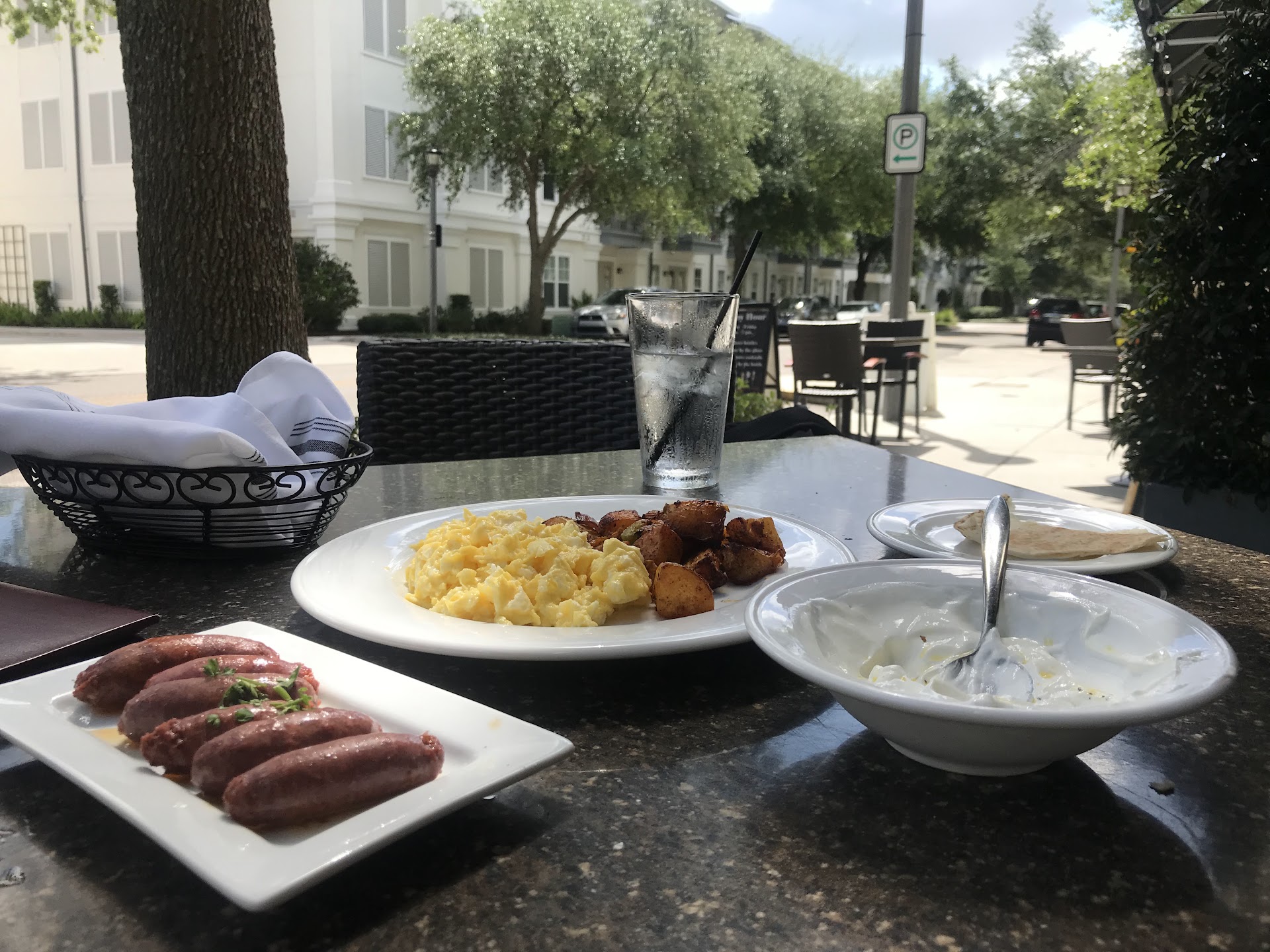 I went there with my two adult daughters for the third time . I was not much impressed by the food before , but the atmosphere is good and it is in a great location . My daughther ordered a chicken gyro and it came with so much dressing that it was dripping everywhere. It tasted over seasoned with too much garlic . We all tried to eat that but nobody could eat the gyro . When we brought up to our server , he said there was nothing wrong with the gyro and the problem was the fact that my daughther “ did not like their most popular dish .” He brought the bill with this uneatable gyro charged and no apologies . I was fine and I understand sometimes dishes do not come right as usual, but I asked him to tell the chef about the excess of dressing to be more aware next time . My intent was continuing going there . He then repeated that there was nothing wrong with the gyro and that he had already served five of them that day and nobody complained about it . Unfortunately, I will not go back there . I am not upset about paying for something we did not eat . My frustration is having a comment invalidated and completely dismissed . It never happened to me before . I think it was kind of unexpected and I wish they could correct that . They may lose many costumers if they continue doing that. I wish them the best .I know it is hard to work in the food industry , but I had to write this review . I hope this review will serve to help them to improve...