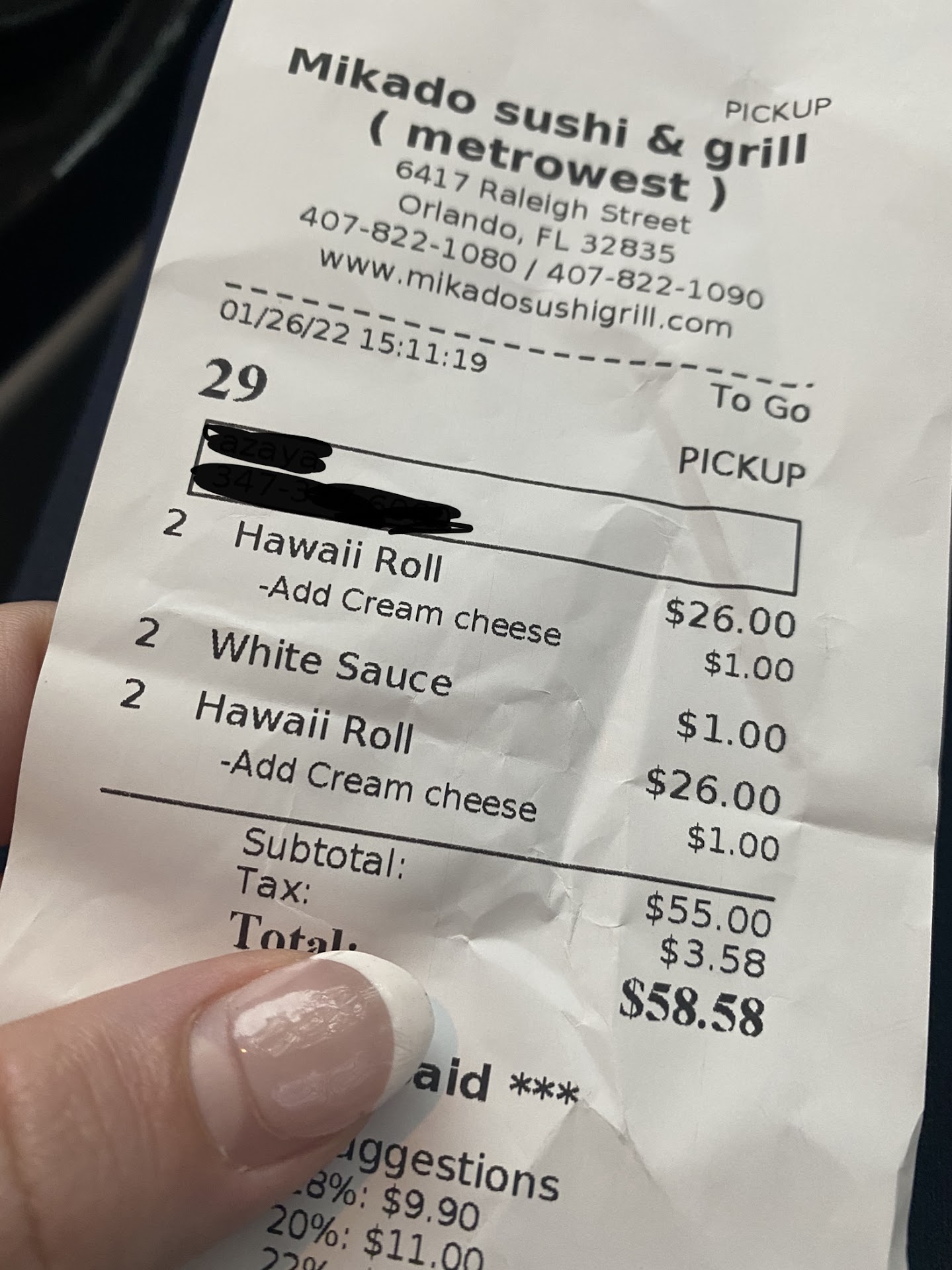 Read moreI rarely take the time to write reviews however when staff LIES, over charges and then give half filled sauces that they up charged I feel the need to. Let me start by saying I have been a HUGE fan of Mikado’s for months now, my fiancé and I literally order the same order 2 sometimes 3x a week for weeks. We both dine in and place orders for pick up often but yesterday when I placed our regular order for my fiancé to pick up I asked for white sauce (same as we ALWAYS DO) the women taking our order mumbled something, since I didn’t hear her I asked what she said or if there was anything else and she stated no no the order is placed and to please make sure we arrive before 3:30 because that’s when they close. Fast forward 15 minutes later my fiancé arrives to pick up our food and we see we’ve been charged for white sauce (which has never happened in over a dozen pick up orders) when my fiancé asks about it the rep states it was stated on the call which not only is a lie, however if that is what she mumbled when I asked her to repeat herself she refused. My fiancé of course pays for the sauce (the problem is not the extra $1, but instead the quality of service, rude responses, and unprofessional manner of handling the situation). In addition to us having to pay for sauce (be aside $60 clearly Isn’t enough money for sushi) when we see the sauce we did get they barely filled the cup (literally the smallest amount we’ve ever received from a pick up order.) we’ll be finding a new favorite sushi place unfortunately. Food is great but how you treat your customers matter and disappointed is an...