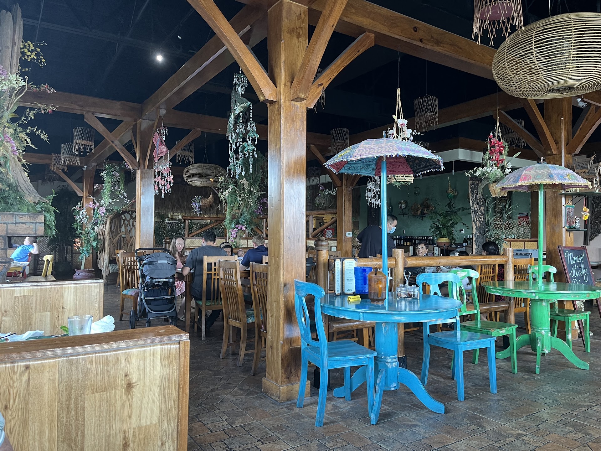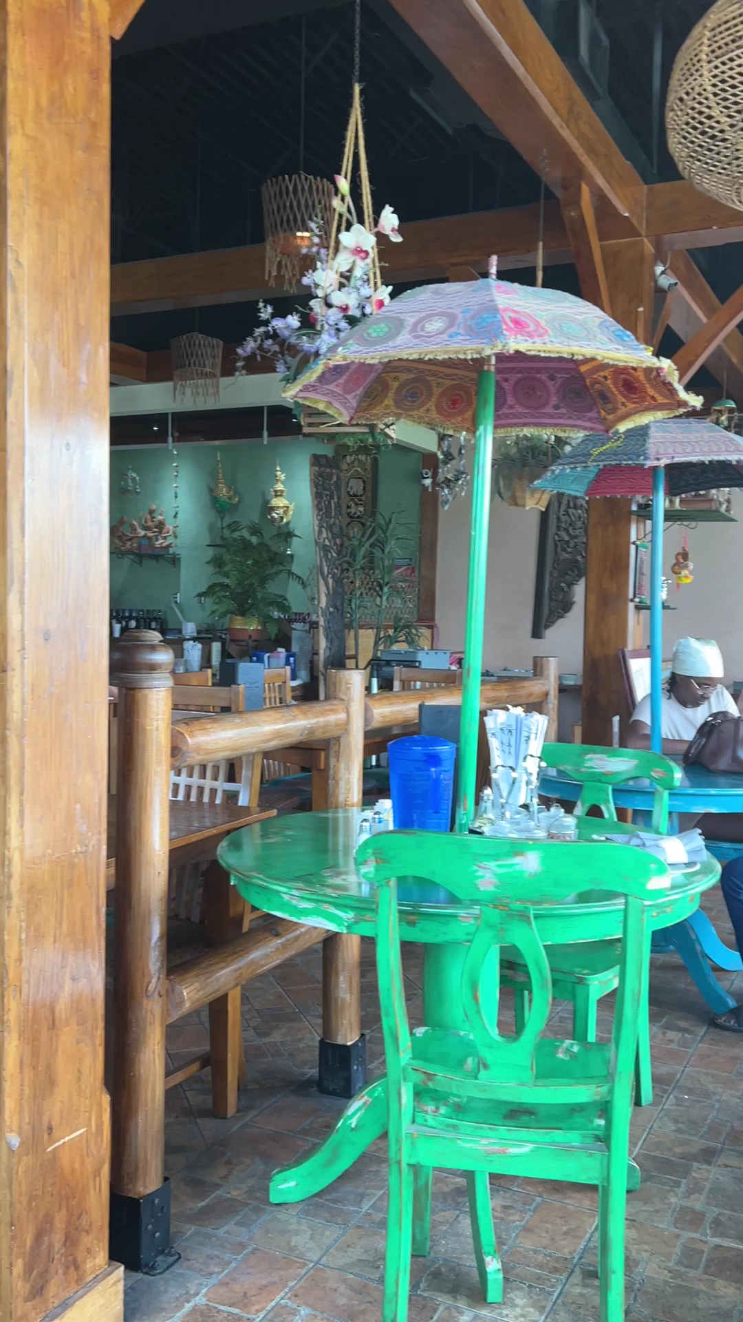 They kept the inside style but brightened it up with hanging orchids, mobile/wind homes, and bamboo accents making it feel like you’re in a secret garden in a forest in Thailand.