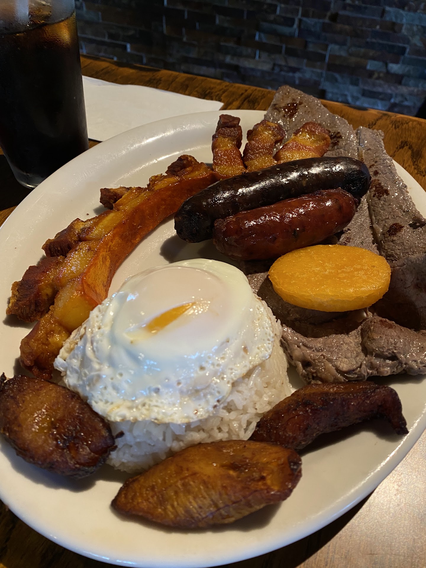 Their bandeja paisa was a true work of art, boasting a hearty medley of tender grilled steak, savory chorizo, crispy chicharrón, and creamy avocado, all accompanied by the most delightful beans and rice. It's a dish that sings the soulful melody of Colombia's rich heritage.