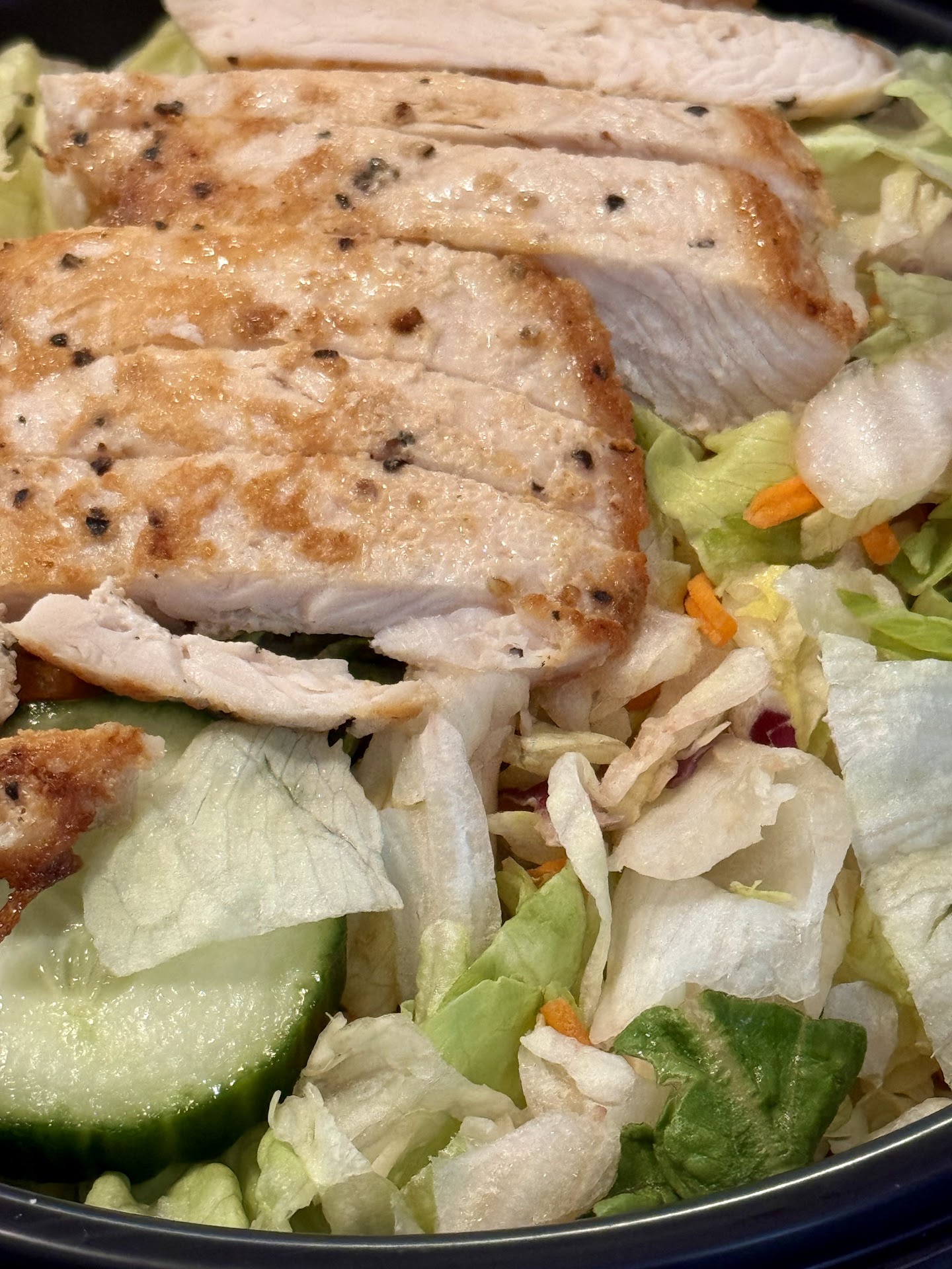 I ordered a Caesar salad 🥗 and it was decent. Fresh enough, had a little crunch, dressing was fine, and it filled me up without making me feel heavy. Nothing to rave about, but I’d probably order it again if I was in a pinch. There were quite a few brown spots on the lettuce which I did not eat…