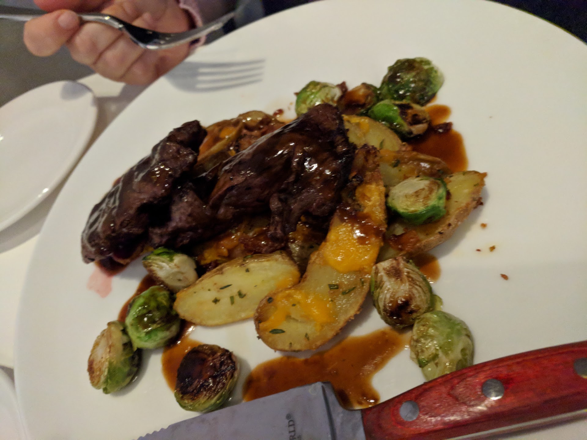 Just stayed at the Marriott for the Roger Waters concert and we slid down to the Shade Bar and Grill for a quick bite. We waited at the hostess stand for a couple of minutes. It looked like there were 2 bartenders, 1 waitress, and 2 bussers or food runners. I believe one of the hotel supervisors noticed us waiting and asked if we'd like a table. After confirming that we did, she let us know she'd grab some menus and be right back. She returned to escort us to our table and asked if we were there for the concert. I told her that we were and that we had been waiting since 2020....COVID. She told me they had just been told same day of the event. The hotel is walking distance from the venue, so they were filling up. Daniella was our server. She was absolutely lovely. The food was delicious. The bartenders were keeping their guests happy (and glasses in one piece). The food runner brought us hot, delicious looking burgers and sweet potato fries. (Yes, the taste was on point 👌) Despite the last minute influx of people everyone did a fantastic job making sure everything ran...