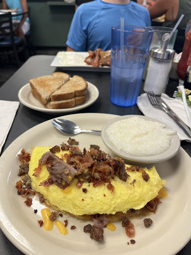 I found this place on Google and saw that they had amazing reviews. This is a small place with a Limited parking area. 10am on a Saturday morning I was surprised that we were able to find a spot to park. But we did. Walking up we saw lots of ppl eating outside and standing outside the door, but thankful as soon as we walked in we were immediately greeted and seated inside. They have a lot of options on the menu but the Short Rib and Hash listed on the Breakfast special board had my attention because it was different. I was originally leaning toward the corn beef and hash. The short rib dish came with scrambled eggs and cheddar cheese. The other order we had was the Brioche French toast, scrambled eggs, bacon and sausage. It was very busy here during our visit but the waitresses did an amazing job providing great service. Once we put our order in, it took less than 10 mins before our food was already on our table. Both of the dishes were great. The Short Rib was diced and tender. Had excellent flavor and the potatoes n carrots that came with it was … wow. That’s all I can say. The only thing about the potatoes were that they had slightly too much salt , but it didn’t ruin the meal. I can’t wait to come back. I now have a new fav breakfast spot in Orlando.