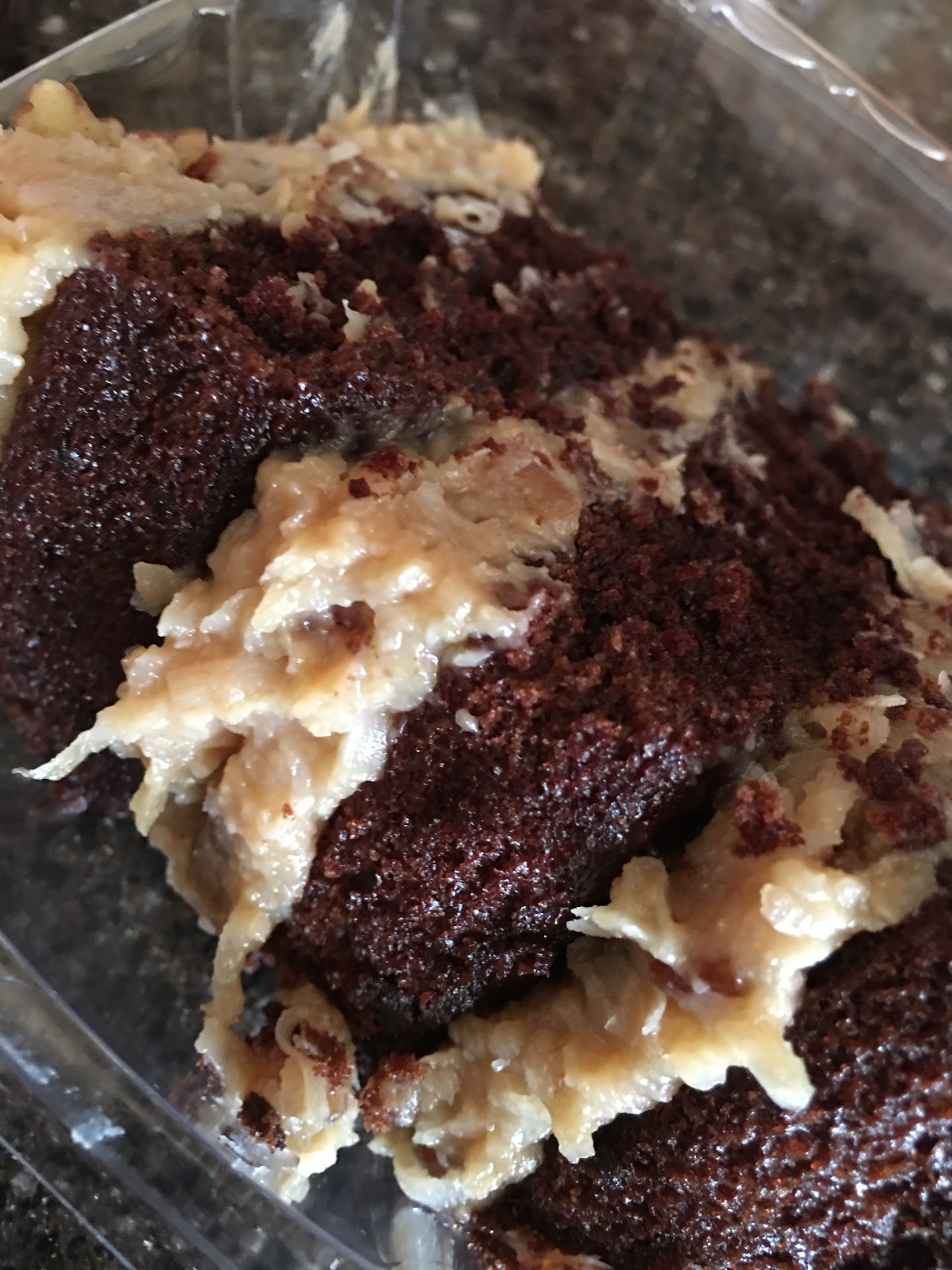In the end my husband didn’t enjoy his as cake as one layer of the German Cake was burnt. Other slices we are bringing back to Jacksonville, FL for my mother in law as a treat.