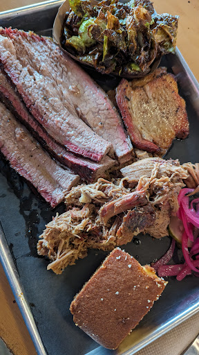 For my meats, I got the moist brisket, the pulled pork and pork belly, with the brussel sprouts on the side. I also added a side of Mac and cheese as the cashier recommended. Everything was good.
