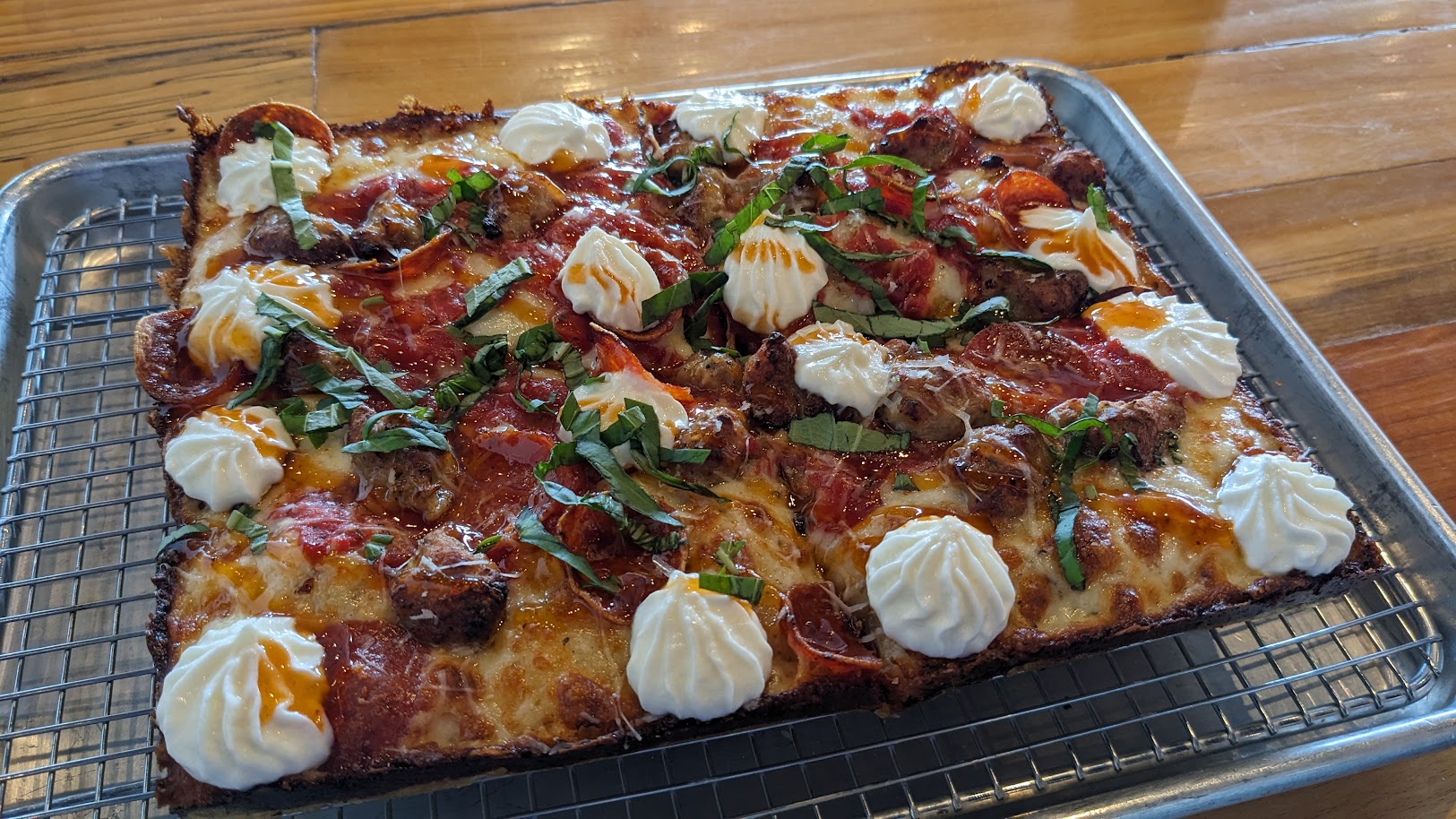 Since this place opened, it has gotten a lot of hype. I'm sure Detroit style pizza existed in Orlando before SoDough, but this place really got it on a Lot of people's radars. And the name, SoDough in SoDo, it literally perfect. Along with just how photogenic the pizzas are, the hype writes itself.